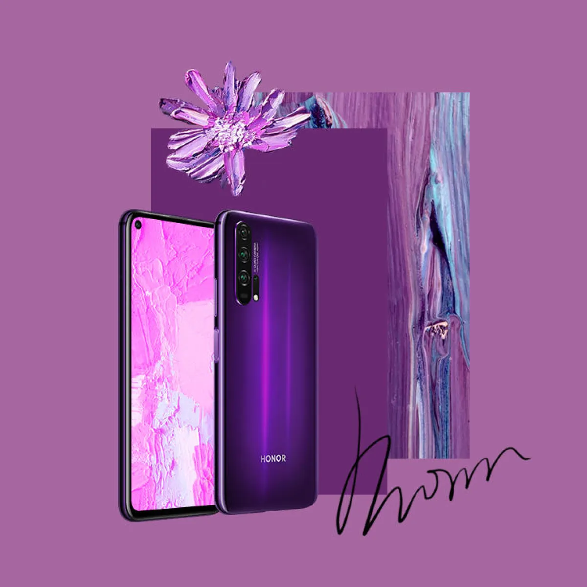 طُلِيَ هاتف HONOR 20 PROبلوني فانتوم بلو وفانتوم بلاك، وتم مزجهما بطبقة زجاجية وعميقة في بيئة مُفرغة تميزت بالتحكم الدقيق بدرجة الحرارة والضغط. وكانت النتيجة تأثيرًا بصريًّا يتّسم بالعمق ويُميّز HONOR 20 PRO عن الهواتف التي سبقته.