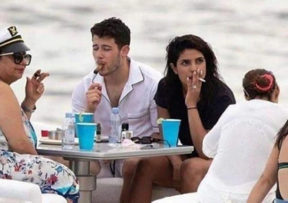 وتظهر بريانكا على متن اليخت وهي تدخّن، بينما تبدو والدتها "مادو شوبرا"، وزوجها مغني البوب نيك جوناس؛ يستمتعان بالسيجار، وهما يجلسان إلى جانبها على اليخت.