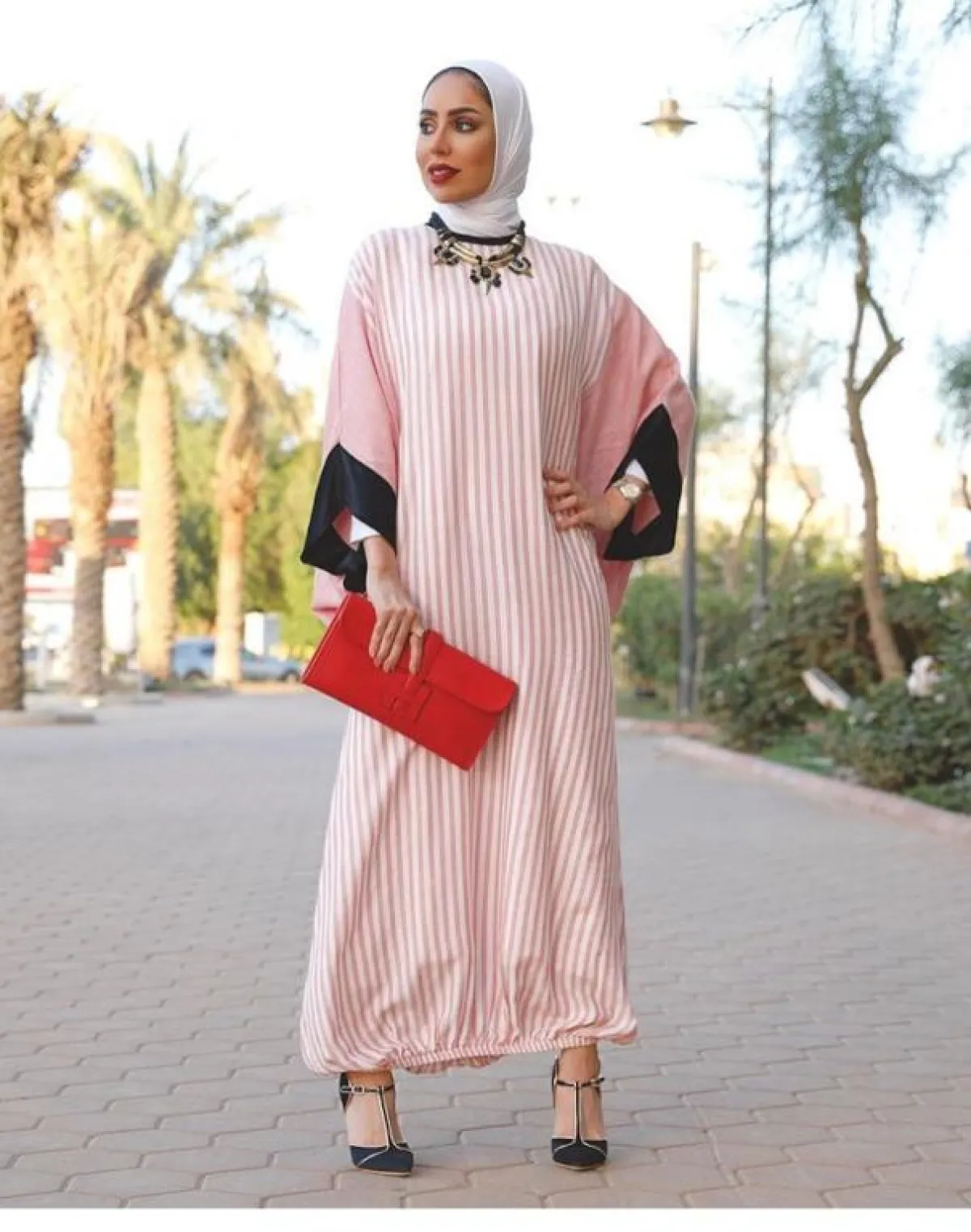 لفتنا أنّ الفاشينيستا فاطيمة تعتمد في بعض موديلات العبايات التي تختارها القصة الواسعة، من دون تحديد الخصر، والتي تناسب كل الصبايا، والمميز أنّ هذه التصميمات تكون مترفة وفخمة للغاية، فليس معنى أنكِ ممتلئة بمناطق معينة في الجسم، أن ترتدي اطلالات فقط تناسبكِ من دون أن يكون بها لمسة من الإبداع.