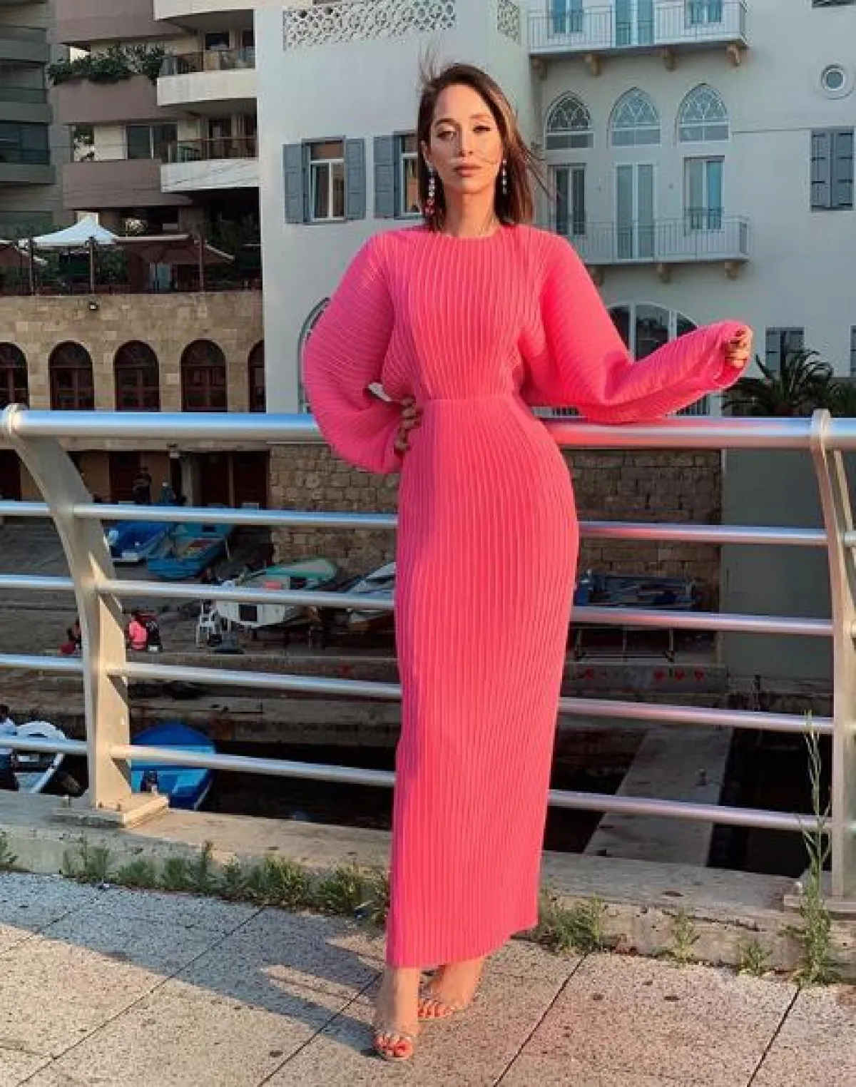لانا الساحلي في فستان ماكسي باللون الفوشيا
