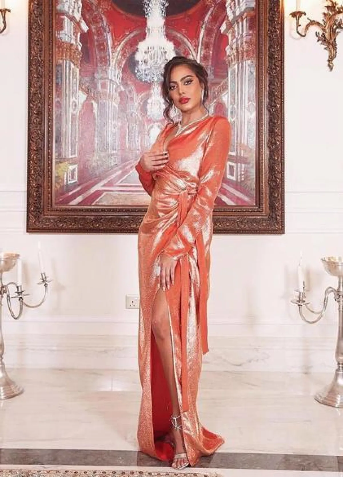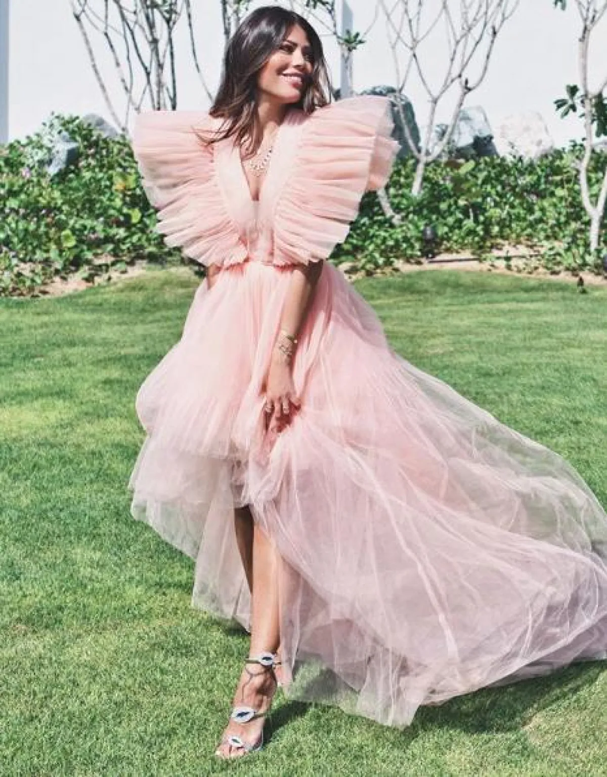 كون عيد الأضحى قادمًا في الصيف، فمن الجميل أن تعتمدي ألوانًا زاهية ومشرقة مثل هذا اللوك الذي اختارته لانا الساحلي مؤخرًا، وكان عبارة عن فستان ماكسي باللون الفوشيا من “سولاس لندن” Solace London تصميمه أنيق ومحتشم، وقد نسقت معه صندلًا بكعب عالٍ باللون الفضي، وأقراطًا لافتة مزينة بالشراريب.
