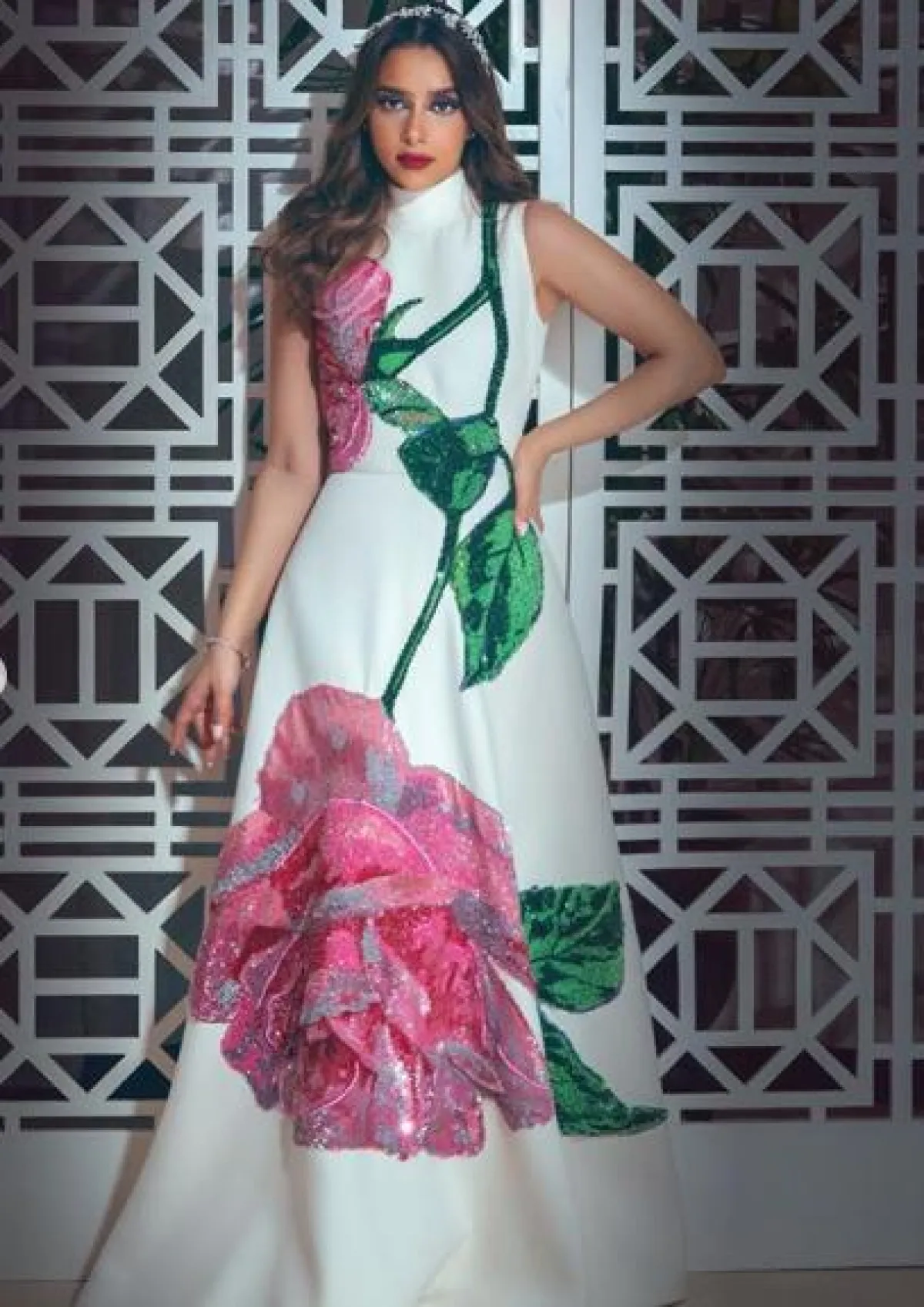 كارلا حداد في فستان مورد بتصميم شبابي