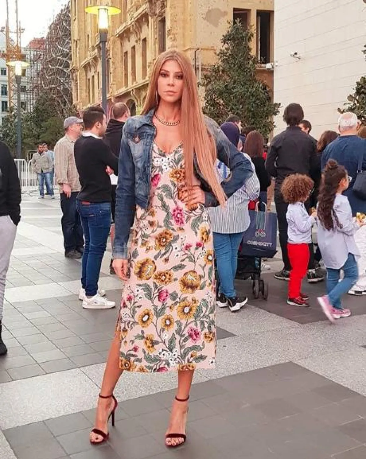 كارلا حداد تختار الاطلالات ذات الطابع الشبابي العصري، ومنها هذا اللوك المميز الذي اعتمدت فيه فستان ميدي موردًا، بقصة منسدلة، ونسقت معه جاكيت جينز باللون الأزرق وأكملت الاطلالة بصندل بكعب عالٍ باللون العنابي، وعقد ذهبي مميز.
