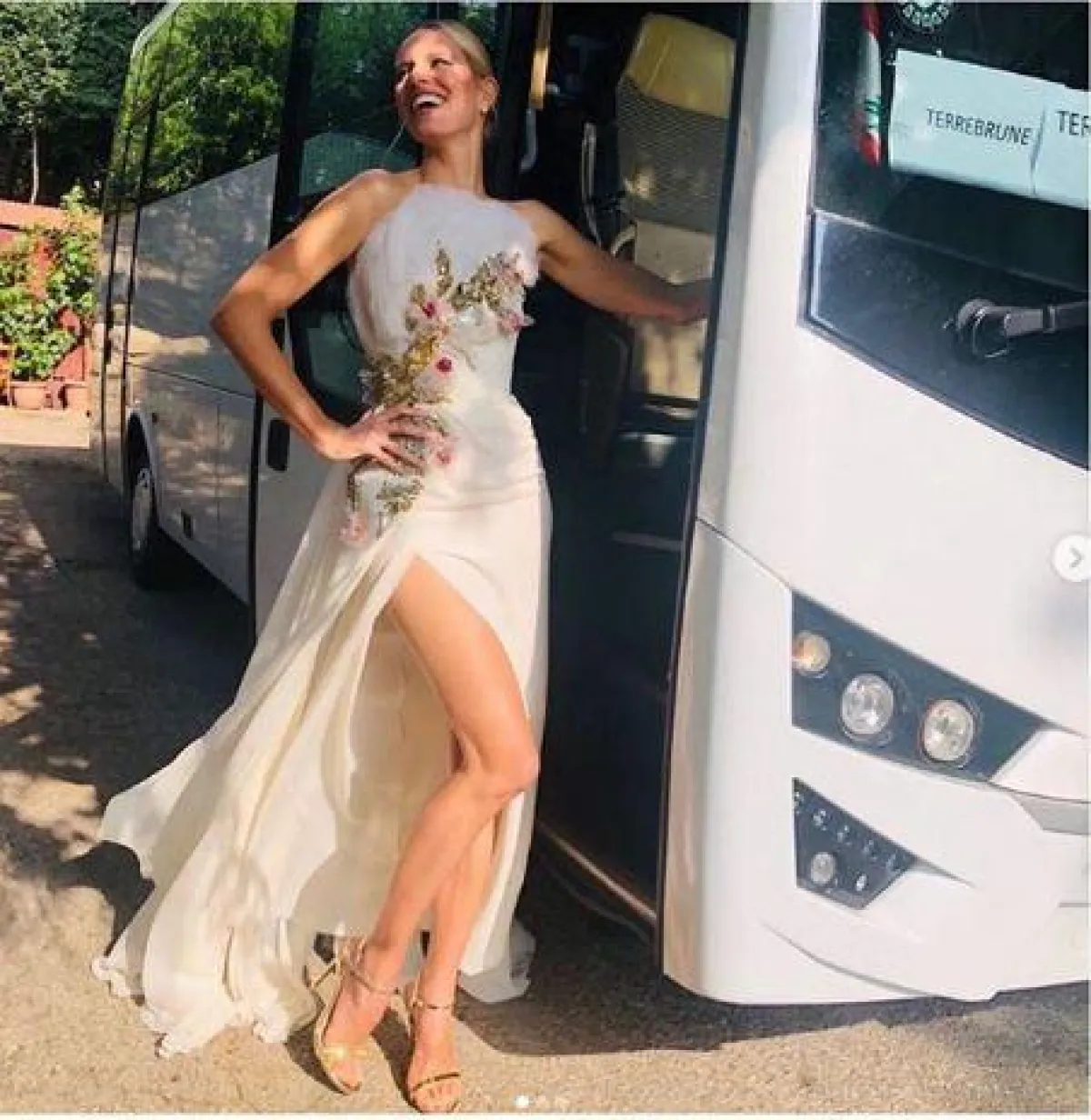 تألقت عارضة الأزياء التشيكية Karlonia Kurkova بفستان باللون الأبيض، مزين بالورود الملونة ومع فتحة طويلة.