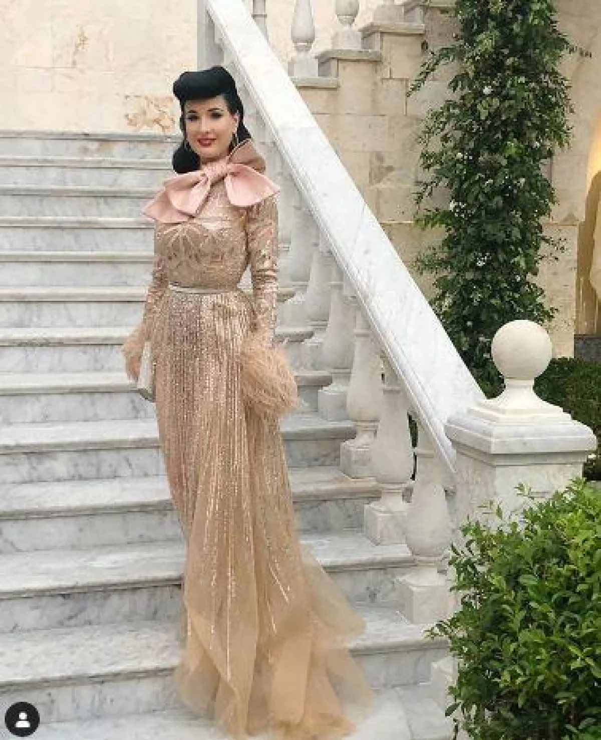 النجمة الأمريكية Dita Von Teese تألقت بفستان باللون الذهبي، مع ربطة "بابيون" عند الرقبة، أضفت عليه الكثير من العصرية.