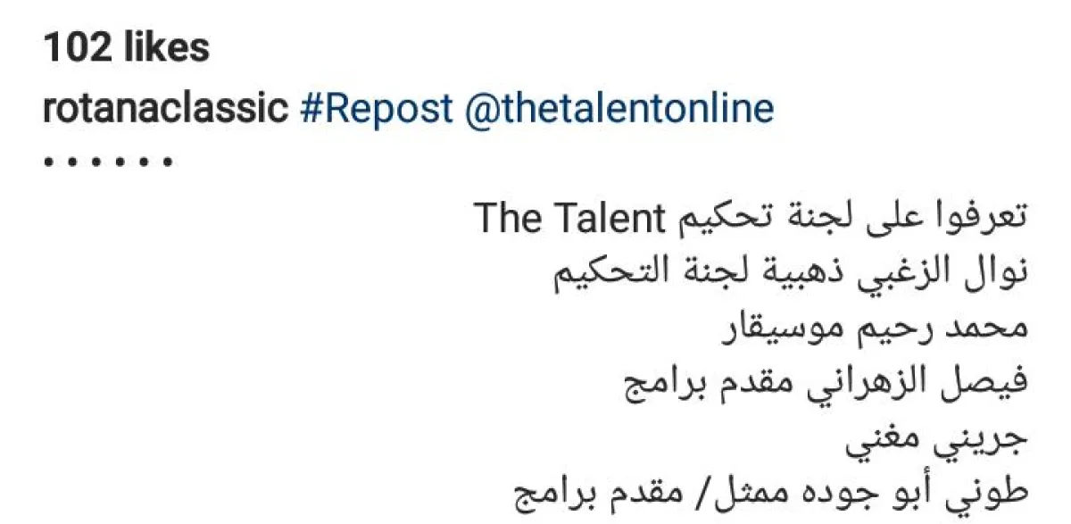 تمّ الإعلان عن أعضاء لجنة تحكيم برنامج "the talent" وهو أوّل برنامج هواة "أونلاين" في العالم ويحمل شعار غرّد للنجوميّة وتقوم فكرته على مشاركة المواهب بفيديو بأصواتهم عبر تطبيقيّ "غوغل بلاي" و"آبل ستور"، ويعتمد على تصويت الجمهور لاختيار الفائز.
