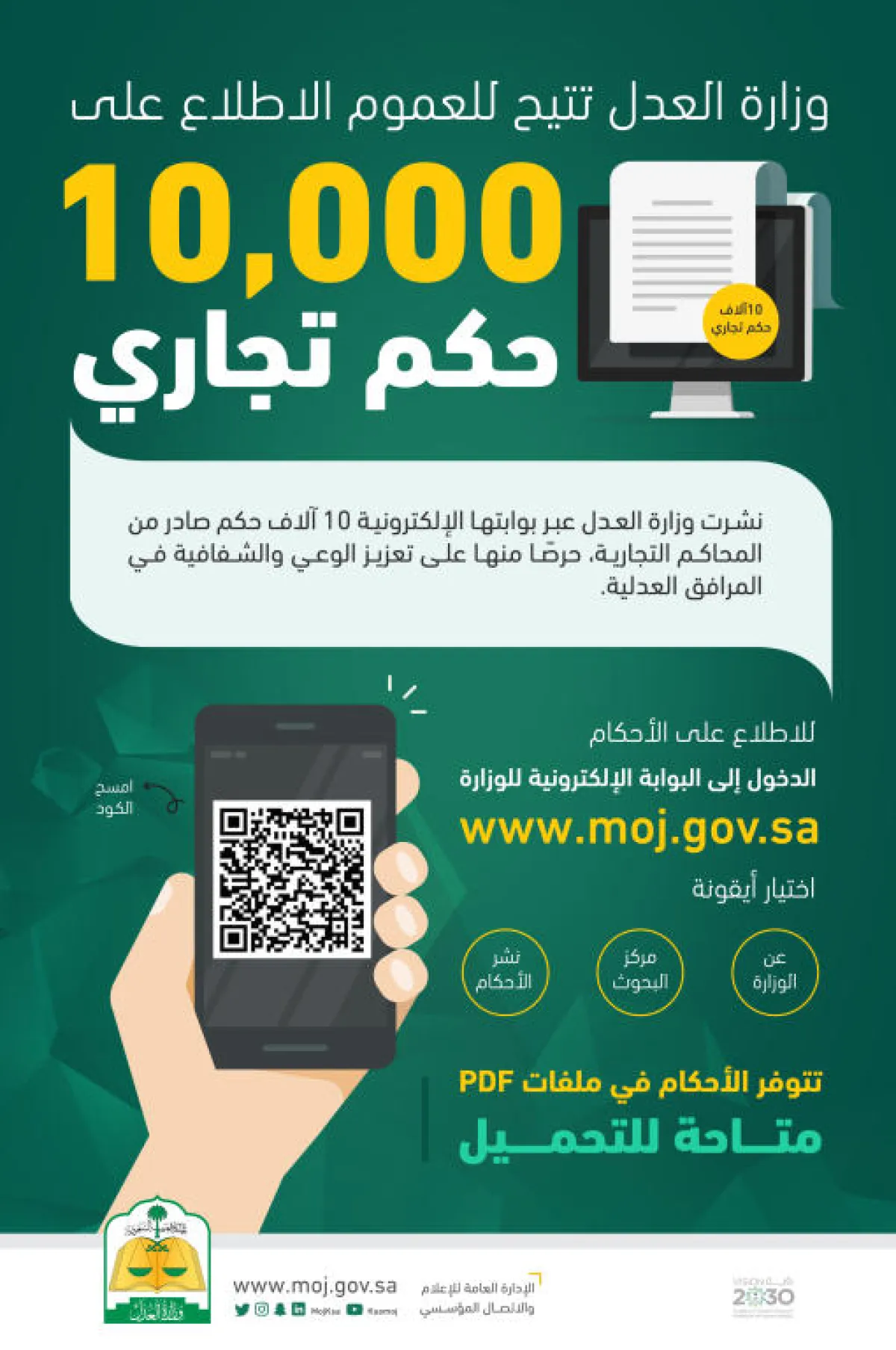 وزارة العدل تتيح للعموم الاطلاع على 10 آلاف حكم تجاري