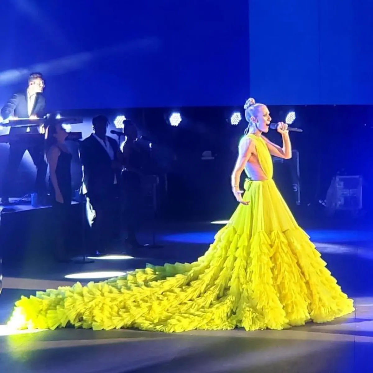أسالت اطلالة النجمة العالمية سلين ديون الأخيرة، الكثير من الحبر، كما تابع صورها أكثر من ,269135 متابع على موقع " الانستقرام " حيث نشرت صورًا لها وهي ترتدي فستانًا أصفر فاقعًا، يتميز بطبقات من قماش " التول " فوق بعضها البعض .