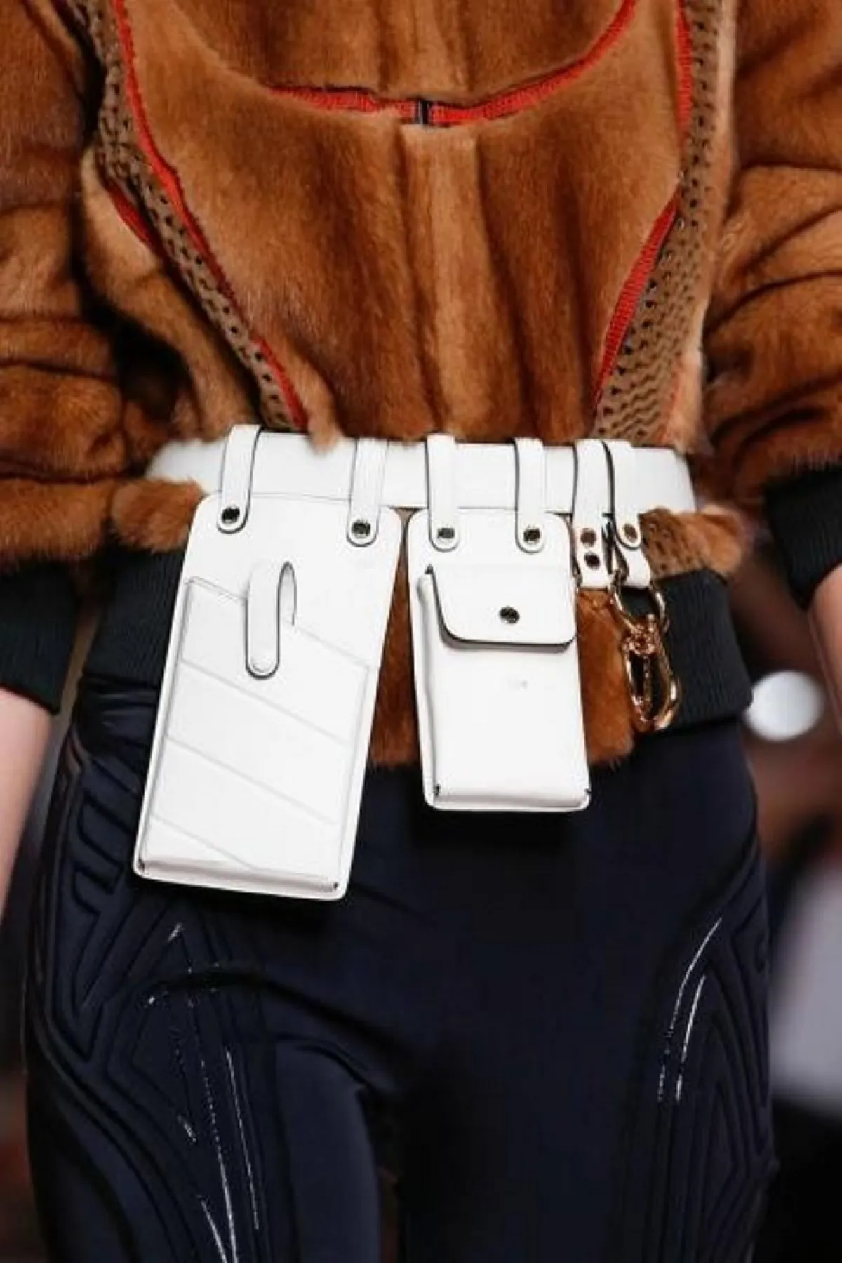 - جربي تزيين العبايات الملونة الفاتحة بشنطة خصر بيضاء، مثل التصميم الموقع من فندي Fendi لتحصلي على لوك شرقي بلمسه عصرية، تواكبين بها جديد الموضة العالمية.