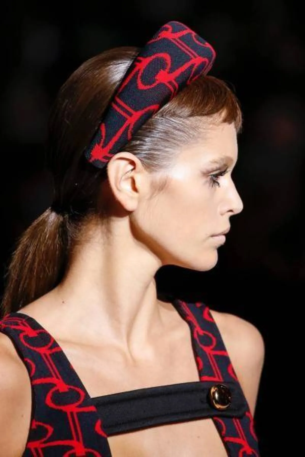 لمزيد من التميّز والإبداع، جرّبي اختيار تسريحة شعر مزيّنة بسكارف ملوّن أو موحّد اللون، لإضفاء لمسات عصرية على اطلالتكِ على غرار تسريحات شعر عروض كل من برادا Prada، وكريستيان ديور، ودولتشي أند غابانا.