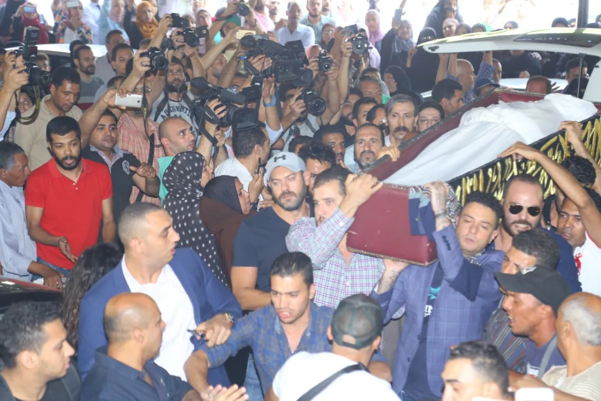 وحمل النعش ابن الفقيد الفنان أحمد الفيشاوي وزميله الفنان عمرو يوسف، وعدد من رجال العائلة، ويتوجه الآن إلى مدينة سرس الليان ليدفن في مقابر العائلة.