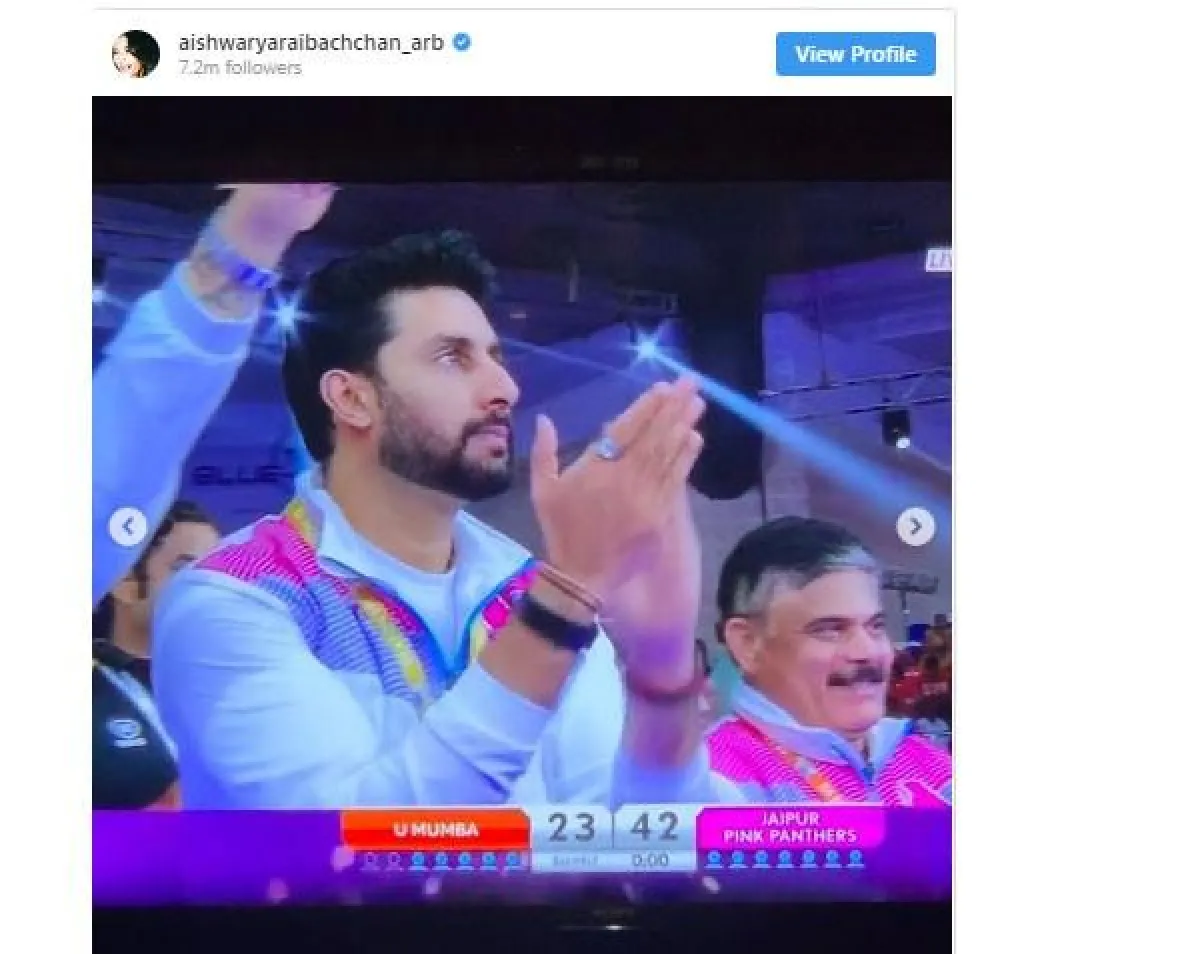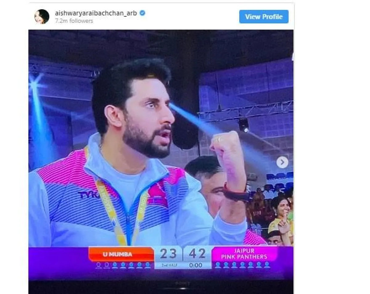 عودة راي ظهرت من خلال مشاركتها صوراً لزوجها النجم أبهيشيك باتشان Abhishek Bachchan كاسرة الصمت الذي كانت تعيش فيه، حيث تظهر الصور أبهيشيك، وهو يقوم بالهتاف وتشجيعه فريقه المفضل.