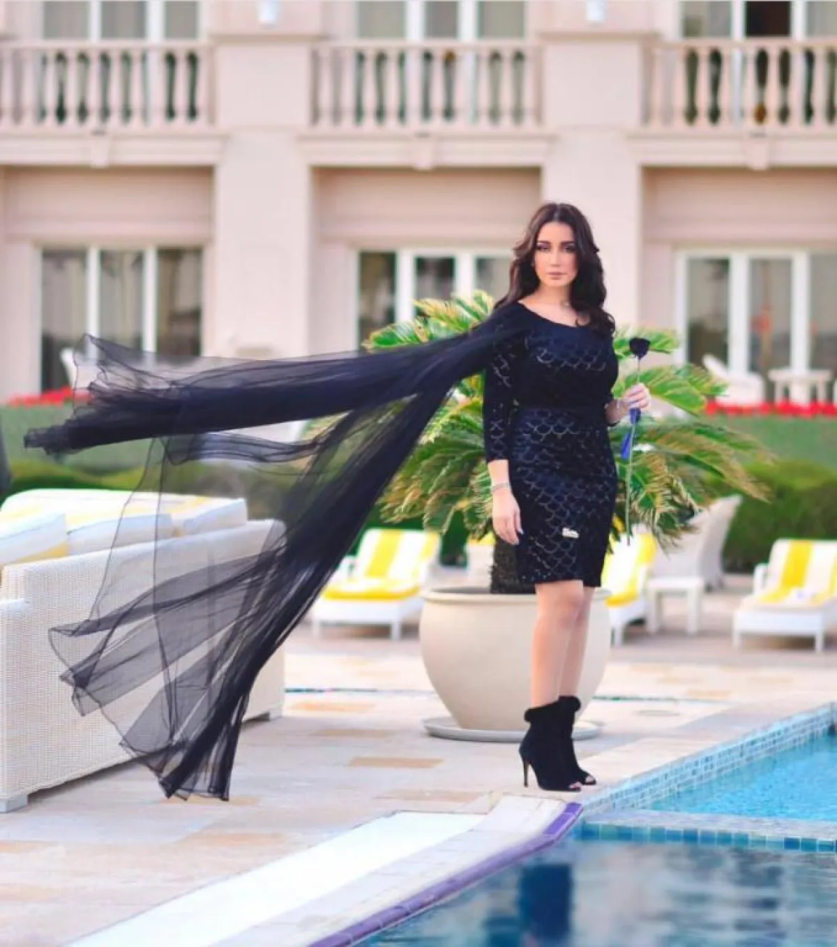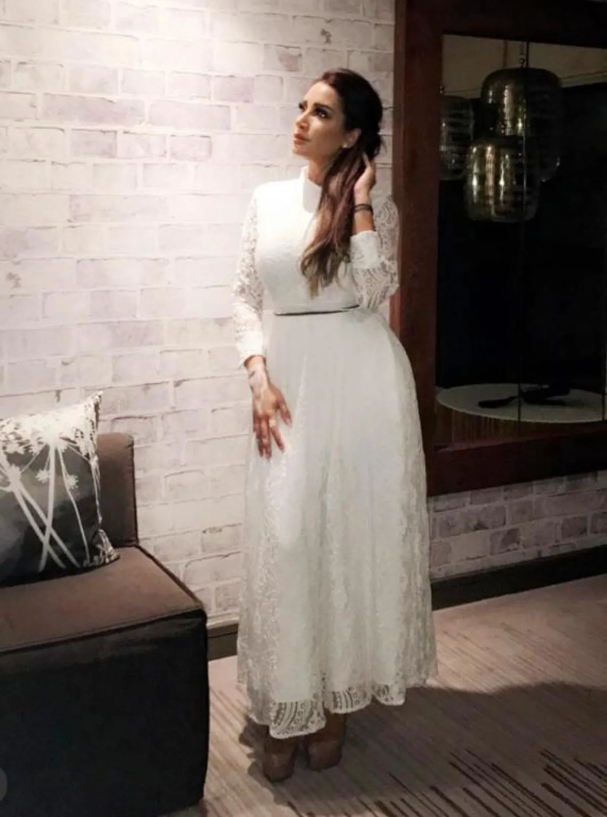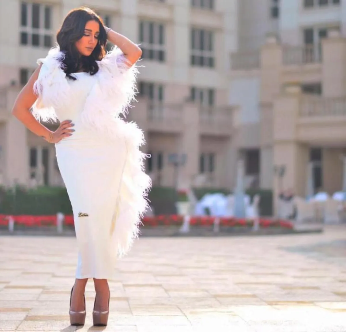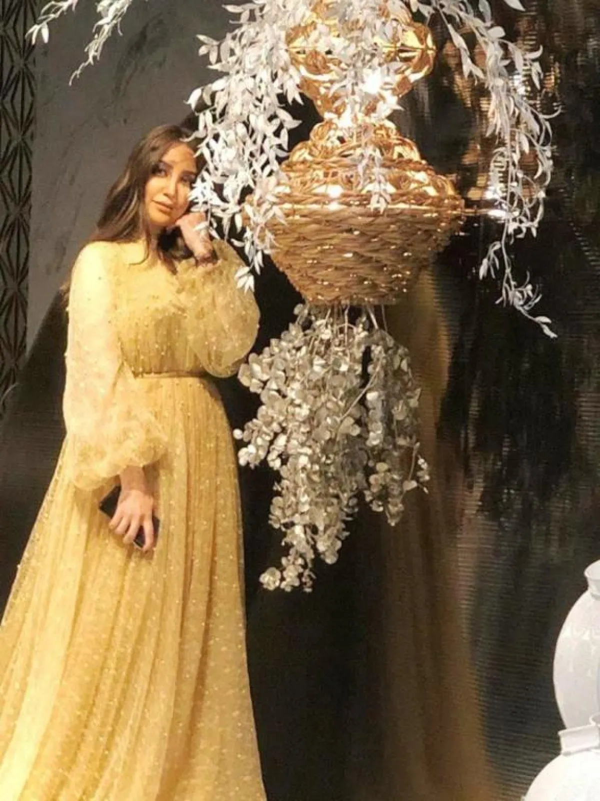 وفي إطلالة ناعمة، ظهرت بفستان أبيض، بأكمام من الدانتيل الشفَّاف، وحزام أسود على الخصر، واختارت أيضاً فستاناً طويلاً باللون الزهري، بأكمام واسعة وشفَّافة، وخرز زهري لمَّاع في الأطراف، وأطلت كذلك بفستان أسود قصير، بقصَّة الكاب، و"بوت" أسود من الفرو.