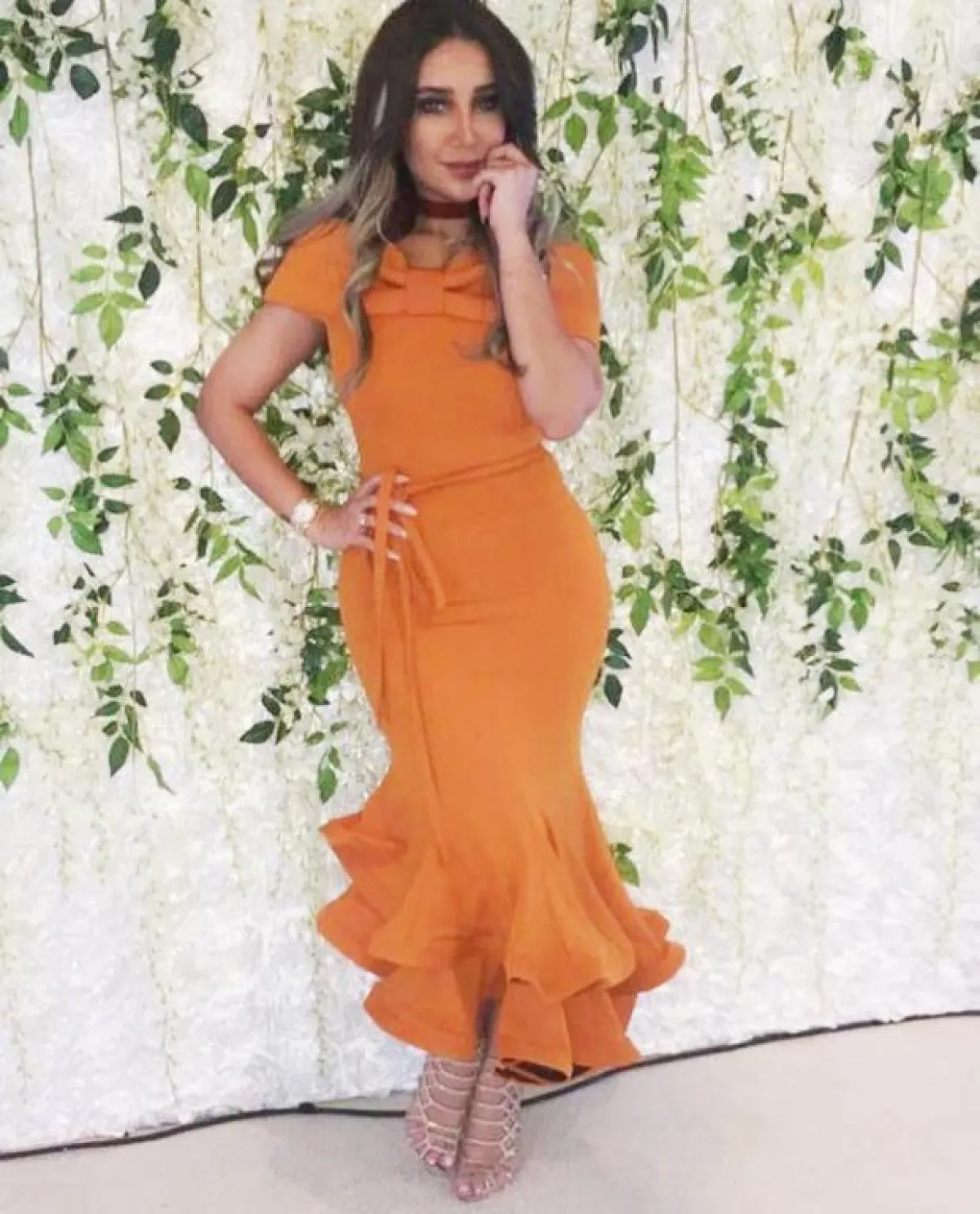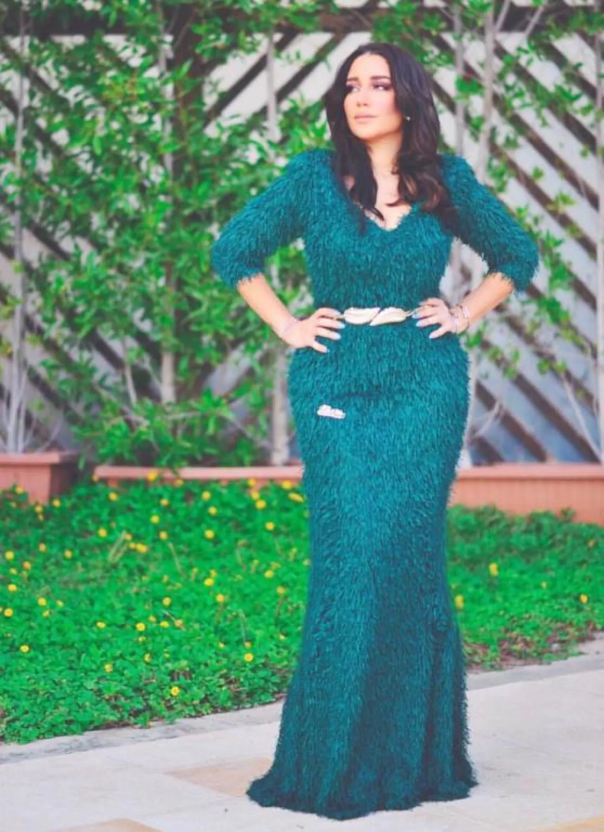 أطلَّت الفنانة أمل بفستان زهري اللون، صُمِّم بنمط الحورية، وتميَّز بقصَّته الجميلة، ولونه الذي يناسب لون بشرتها، وصفَّفت شعرها بشكل مموَّج، وزيَّنته بإكسسوارات فضية وسوداء، كما ارتدت فستاناً أبيضَ بتصميم منفوش، وزيَّنته بعديد من الزهور البنفسجية، وفي إطلالة ثالثة، ظهرت بفستان أصفر منفوش بأكمام شفَّافة وحزام على الخصر، كذلك ارتدت فستاناً باللون البرتقالي، بأكمام قصيرة، وحزام خصر، وكشكشة من الأسفل، وفي إطلالة غاية في الروعة، اختارت فستاناً طويلاً أخضر اللون، مزيَّناً بالريش الناعم من الخصر، وحزام ذهبي عليه أوراق الشجر، أيضاً ظهرت بفستان قصير أبيض مزيَّن بالريش على الأطراف والكتف.