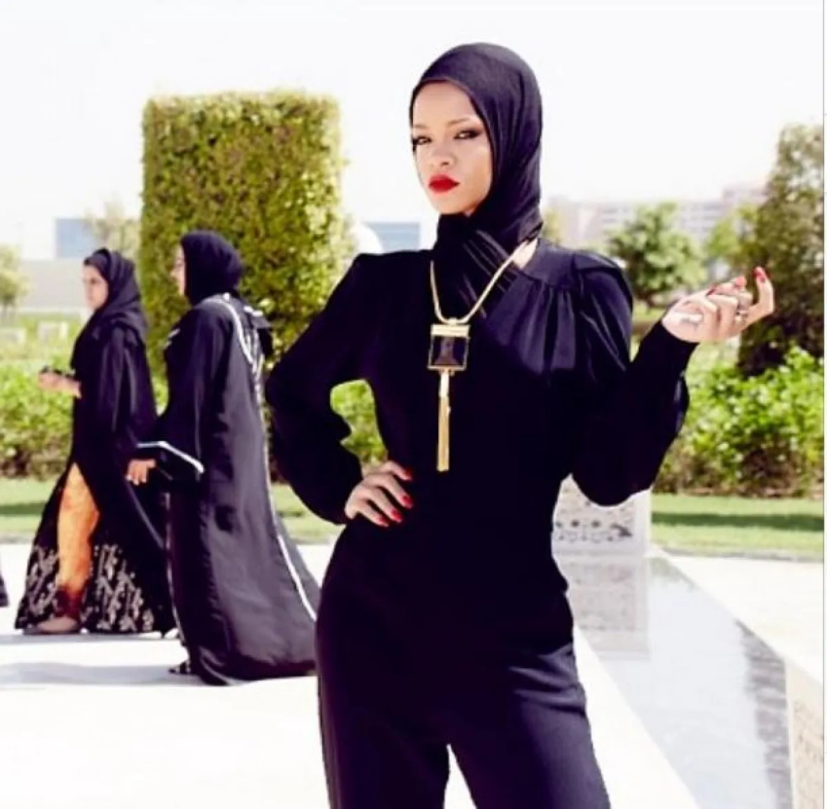 أثارت الفنانة العالمية Rihanna جدلا واسعا على موقع التواصل الاجتماعي فيس بوك، بعد أن نشرت عبر حسابها على انستغرام صوراً لها، وهي محجبة أمام مسجد الشيخ زايد في أبوظبي، مرتدية مجسم الكعبة في سلسلة على الصدر.