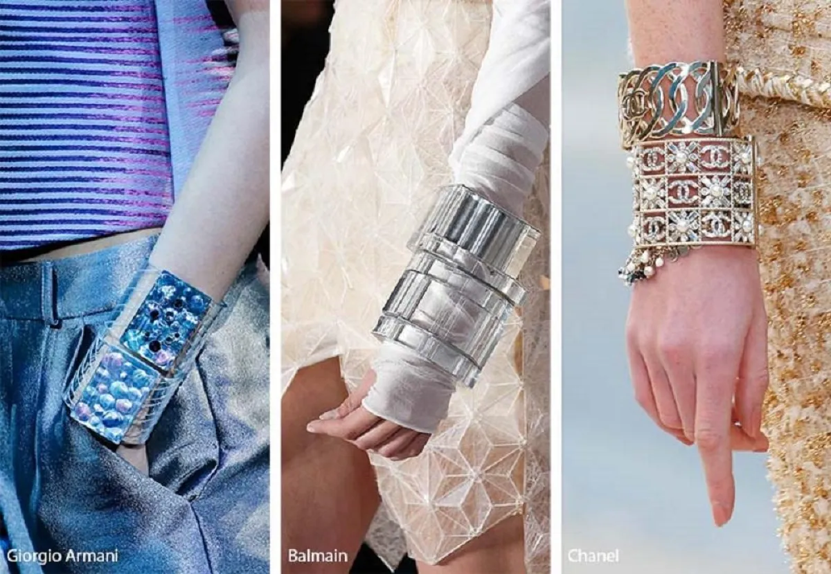 يعدّ موسم الصيف من أكثر الفصول التي تسعى فيها المرأة للحصول على آخر الصيحات من مختلف أنواع وأشكال الأكسسوارات بالأخص الأساور الكبيرة «Cuffs»، ذلك كي تغني بها إطلالتها وتضفي عليها الحيوية والفخامة. وقد قدّمت أرقى دور الأزياء العالمية ضمن مجموعاتها لصيف 2019 من الأزياء الراقية والجاهزة أجمل تصاميم الأساور الكبيرة الفاخرة والعصرية بالأخص دار جيفينشي Givenchy وشانيل Chanel وجورجيو أرماني Giorgio Armani وغيرها من العلامات.