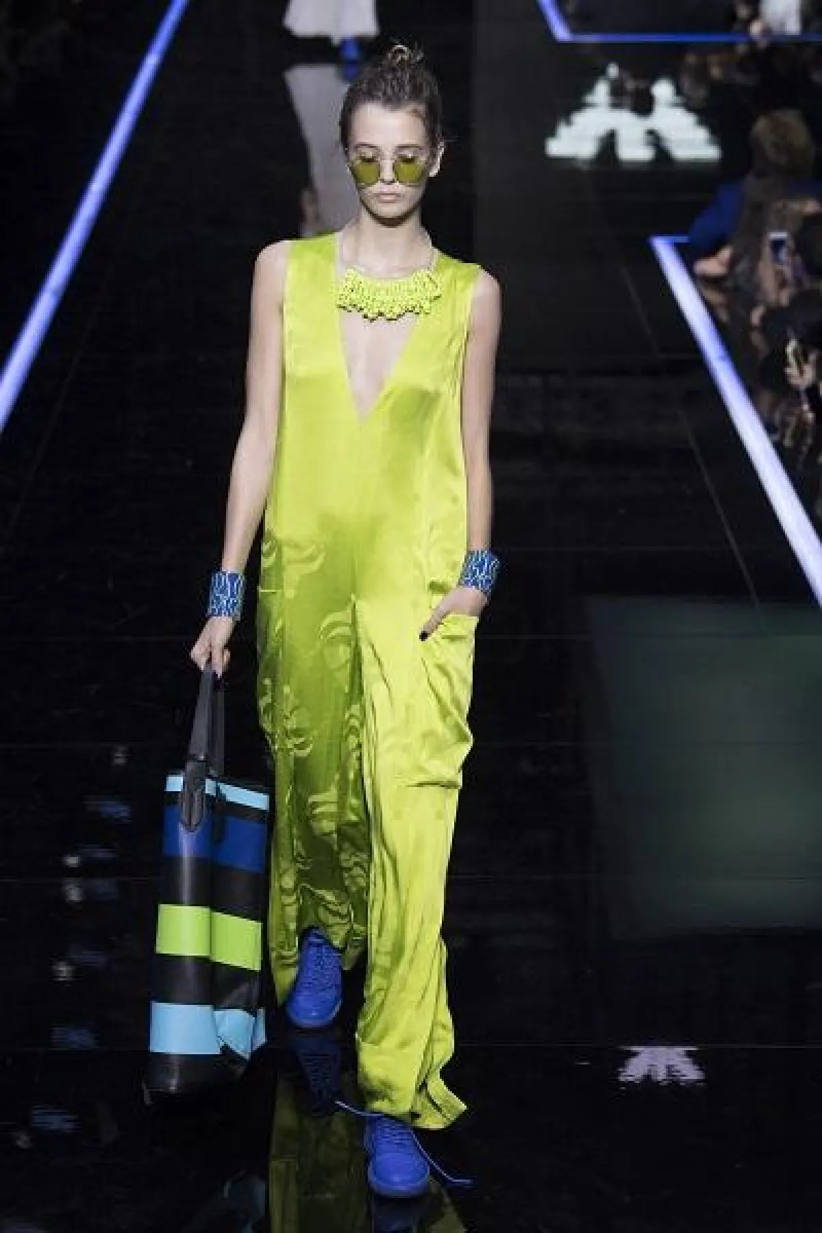 رأينا أيضاً الأساور الكبيرة الملوّنة على منصة عرض إمبوريو أرماني Emporio Armani، فجاءت مصممة من المواد البلاستيكية الصلبة وبألوان مناسبة مع الأزياء.