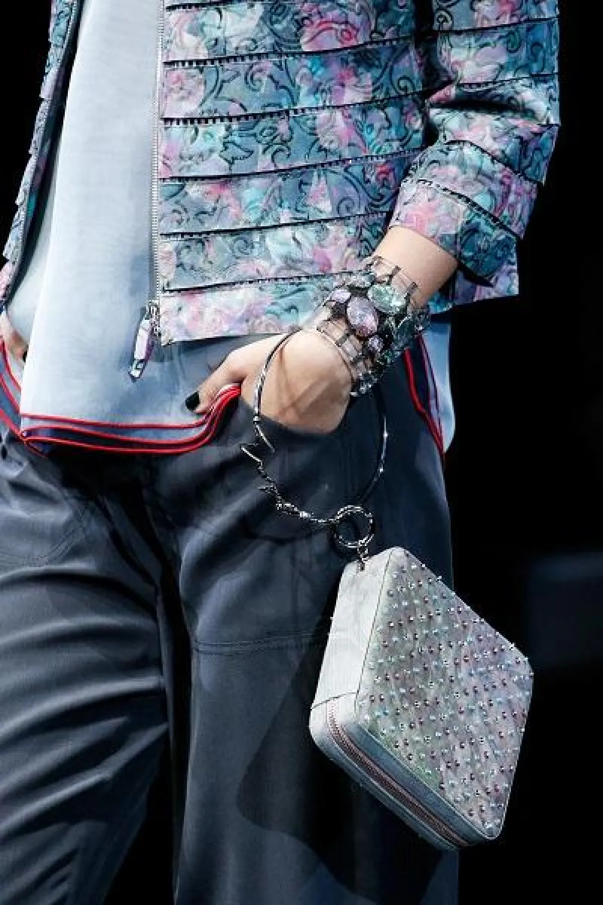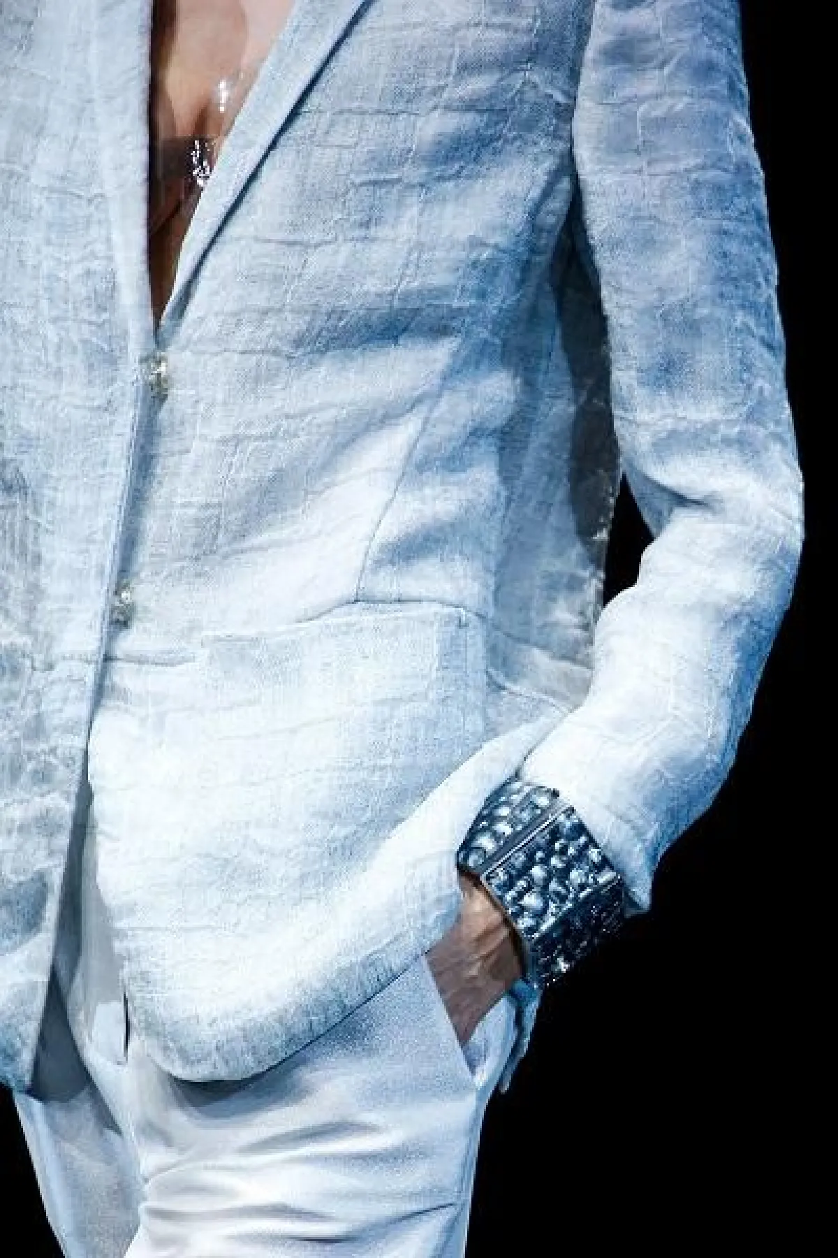 شاهدنا خلال عرض جورجيو أرماني Giorgio Armani، مجموعة من الأساور الكبيرة المصممة من البلاستيك الشفاف المفعم بالألوان أهمّها ظلال لونَي الأزرق والأرجواني. كذلك، فقد قدّمت الدار أساور كبير مرصّعة بالأحجار الملوّنة الملفتة والتي تبرز المعصم بكلّ رقّة.