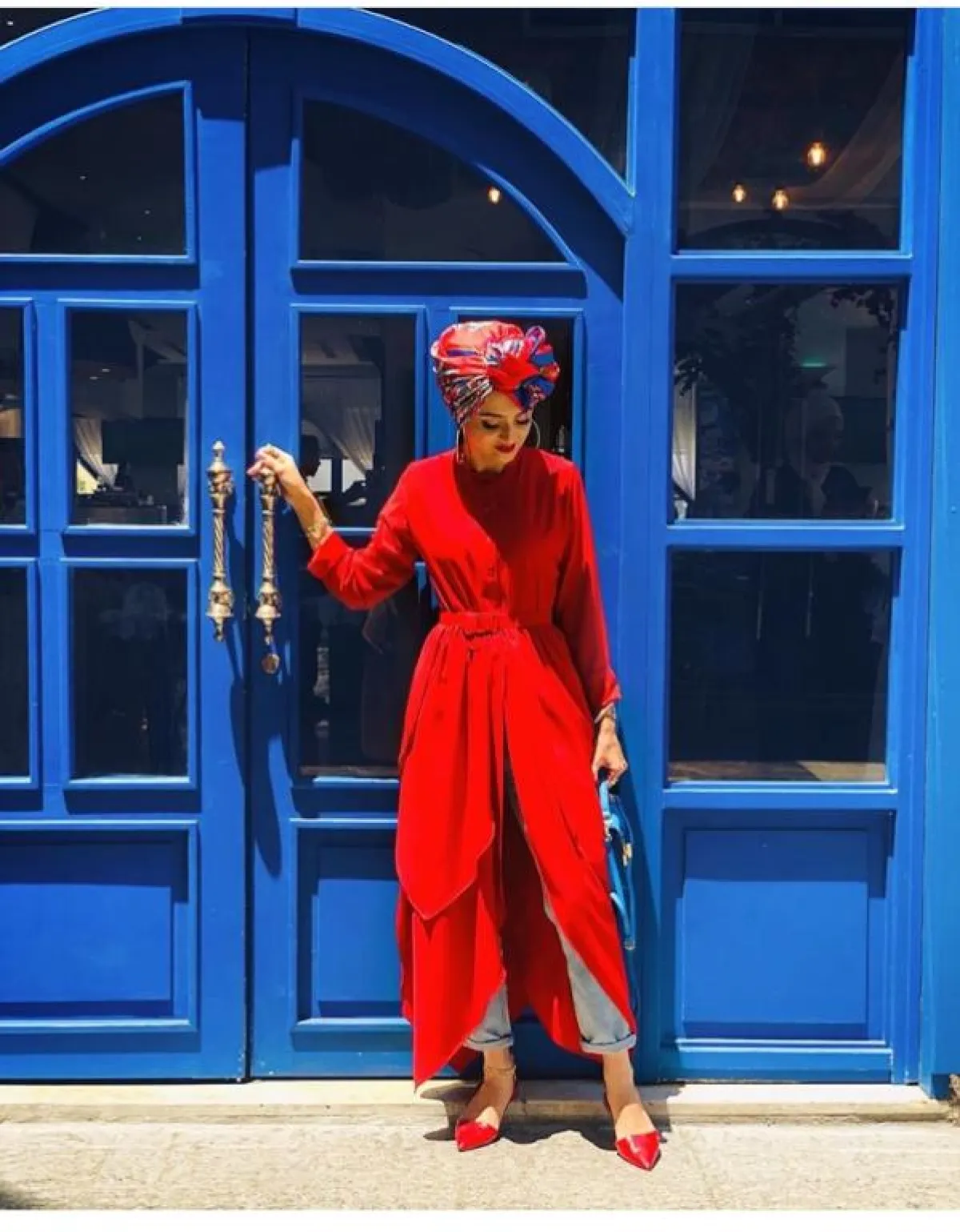 كلنا نعرف مدى هيمنة البليزر على عالم الموضة في صيف 2019، لكن ألم تنتبهي عزيزتي أن اللون الأحمر تحديدا كان مسيطرا بشكل كبير على هذه الموديلات، كالفاشينيستا إسراء عثمان، الذي نسقته مع تنورة مزركشة بالرسومات، وتوربان باللون الأحمر.