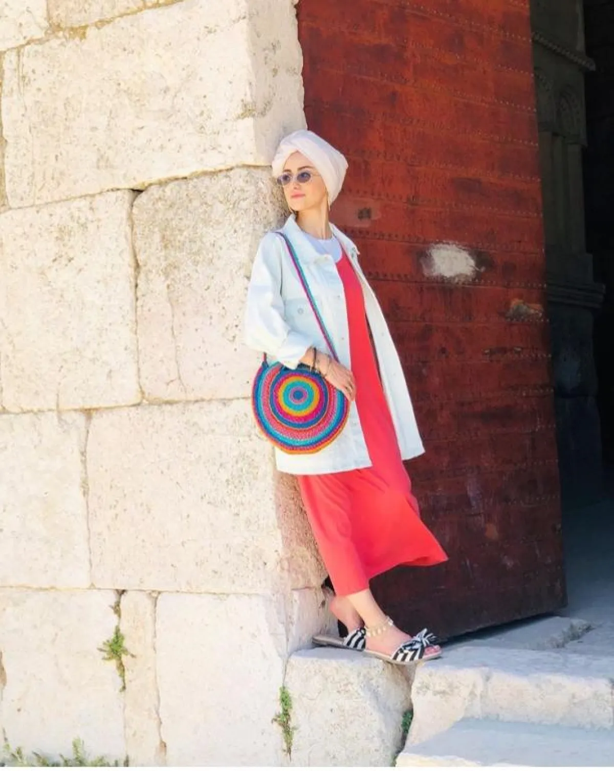 أما الفاشينيستا سهى، فقد اختارت هذا اللون بمعطف الترينش الصيفي، اعتمدته بطريقة كلاسيكية، مع البنطلون الأسود القماشي، والحجاب الأسود، وكعب عالٍ مع رباط الكاحل، أضاف لمسة أنثوية لإطلالتها.