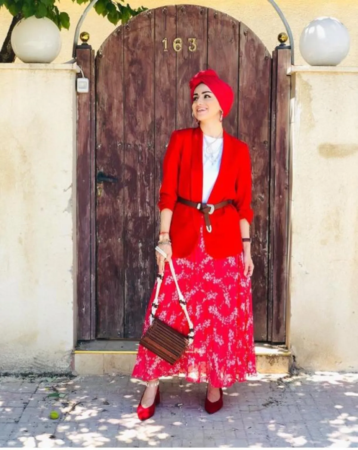 وبما أننا على مشارف عيد الأضحى، فلم لا تكون إحدى إطلالاتك بهذا العيد باللون الأحمر الجريء، وسوف نساعد بهذا الأمر بـ ملابس محجبات من مدونات الموضة، بهذا اللون المميز بدرجاته المختلفة.