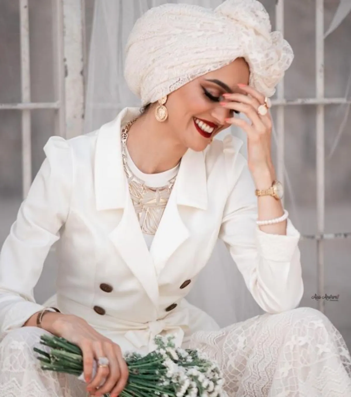 اللون الأبيض مسيطر على عالم الموضة بشكل كبير، وبالطبع كثير من الصبايا اعتمدن عليه كلفة حجاب أساسية، لكن المميز بهذا اللوك هو اختيار غادة عثمان للحجاب الأبيض بخامة الدانتيل الناعمة، لتنسقه مع البليزر الأبيض والتنورة الدانتيل لإطلالة تجمع بين النمطين الكلاسيكي والعصري.