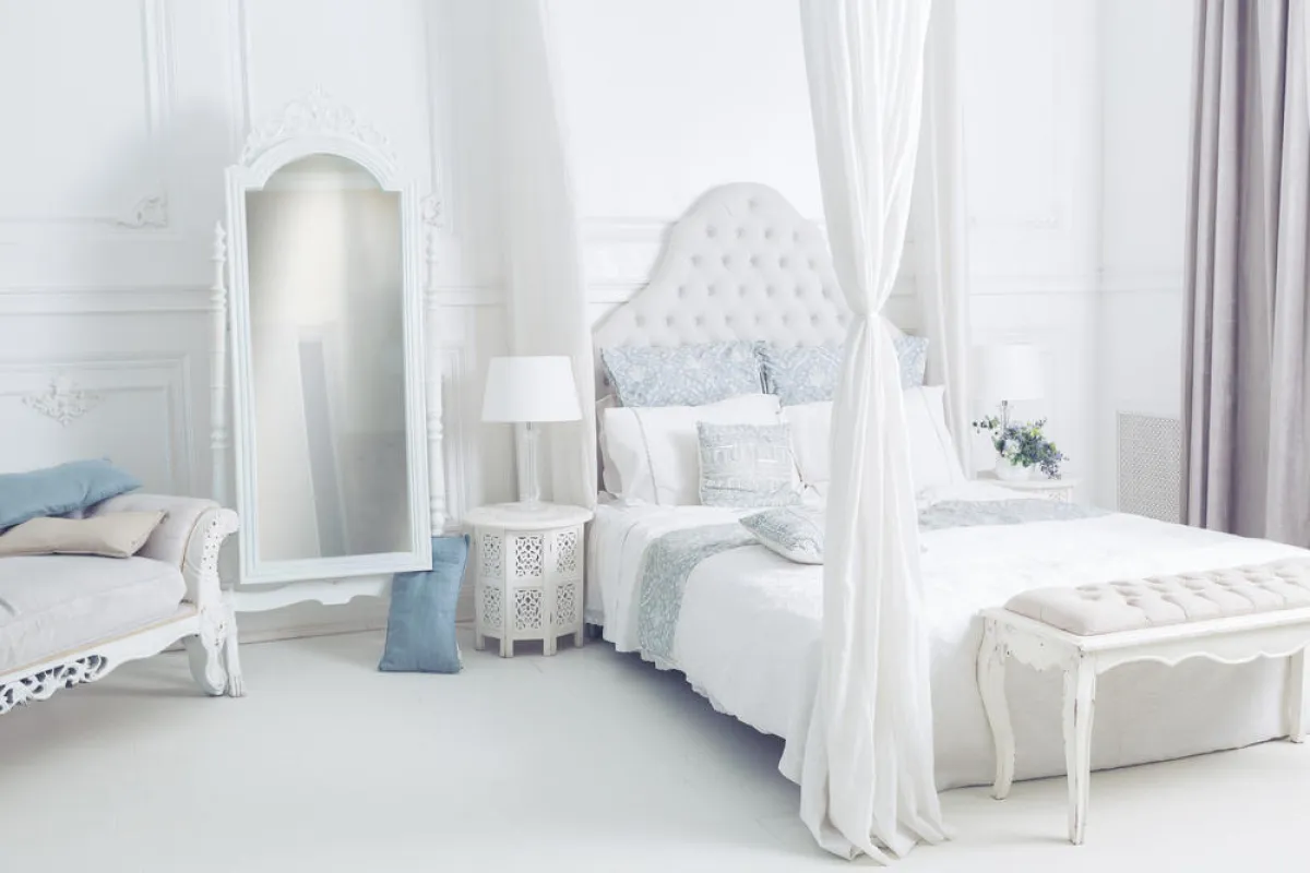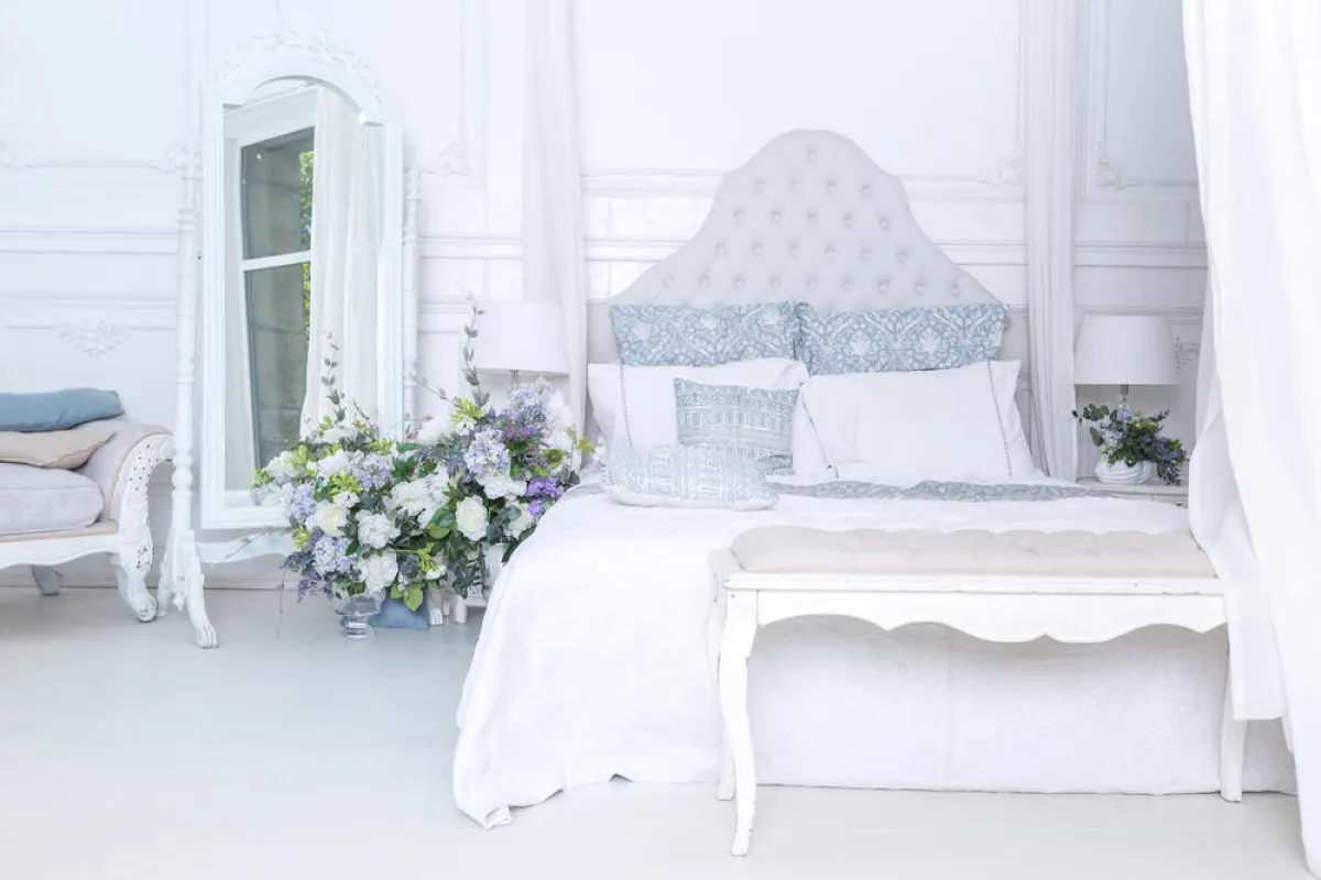 • يحلو اختيار الأثاث الخشب بلون الأبيض اللؤلؤي، والأقمشة الفاتحة.