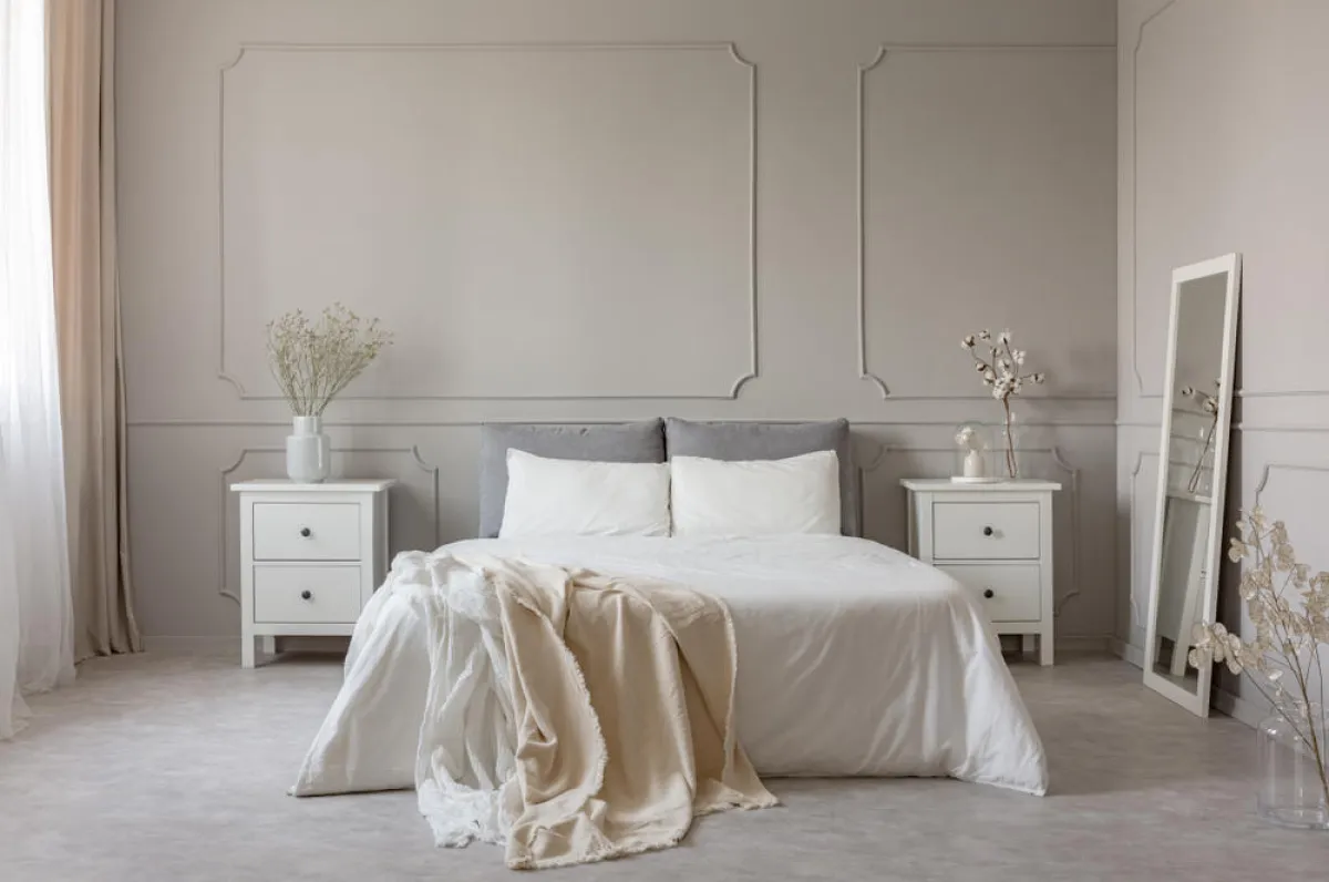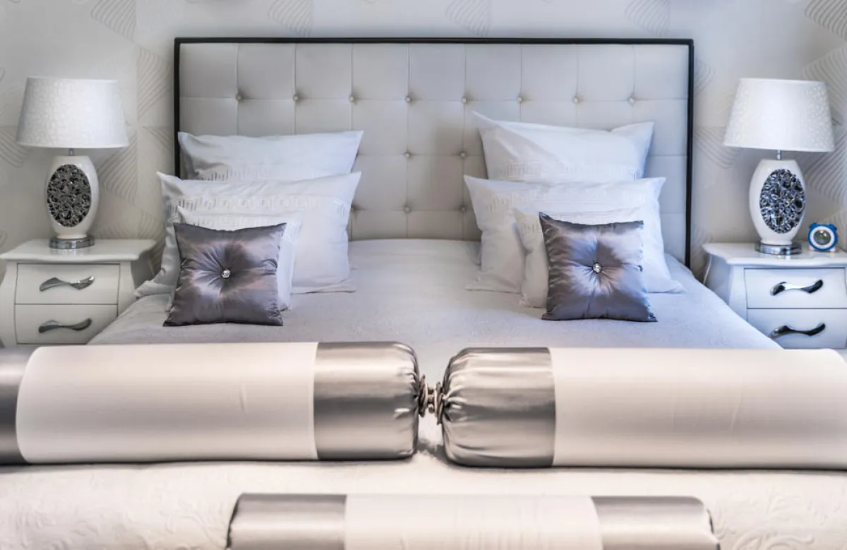 • لا يجب انتقاء مفرش السرير سادة، بل ذلك ذي الخلفيَّة الفاتحة، والمشغول من أنواع أقمشة عدة، ومنها: الـ"فوال" والـ"موسلين". ويحلو توزيع ستّ وسائد عليه ذات أشكال وأحجام مختلفة.