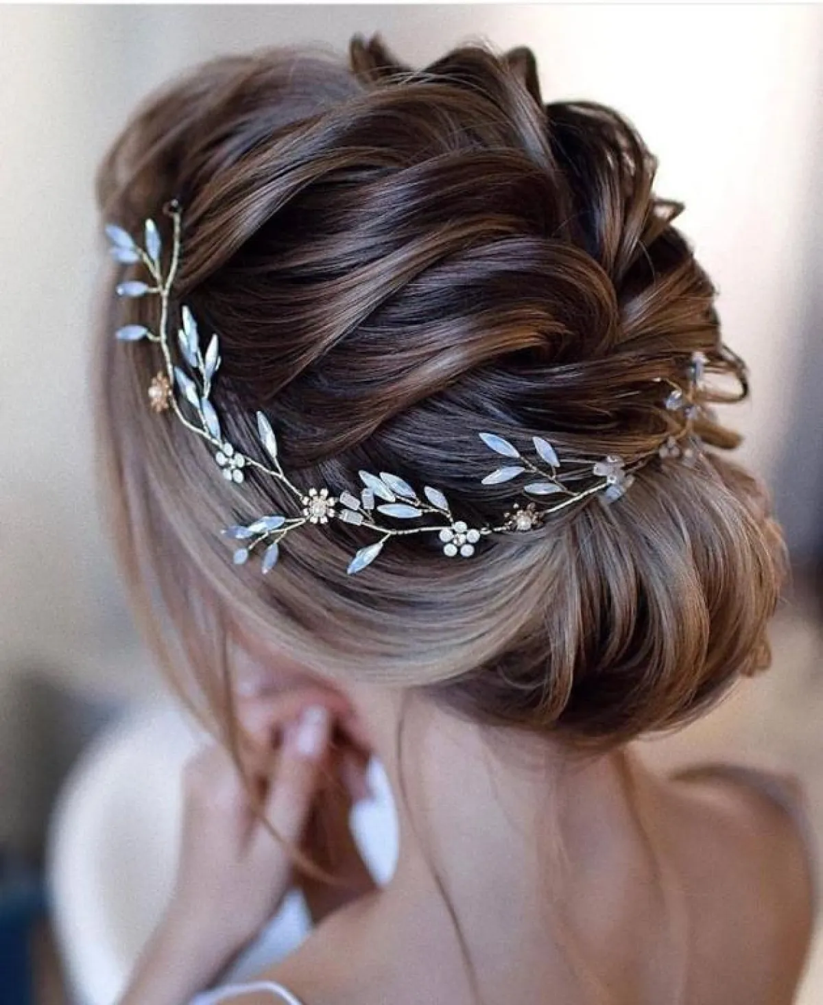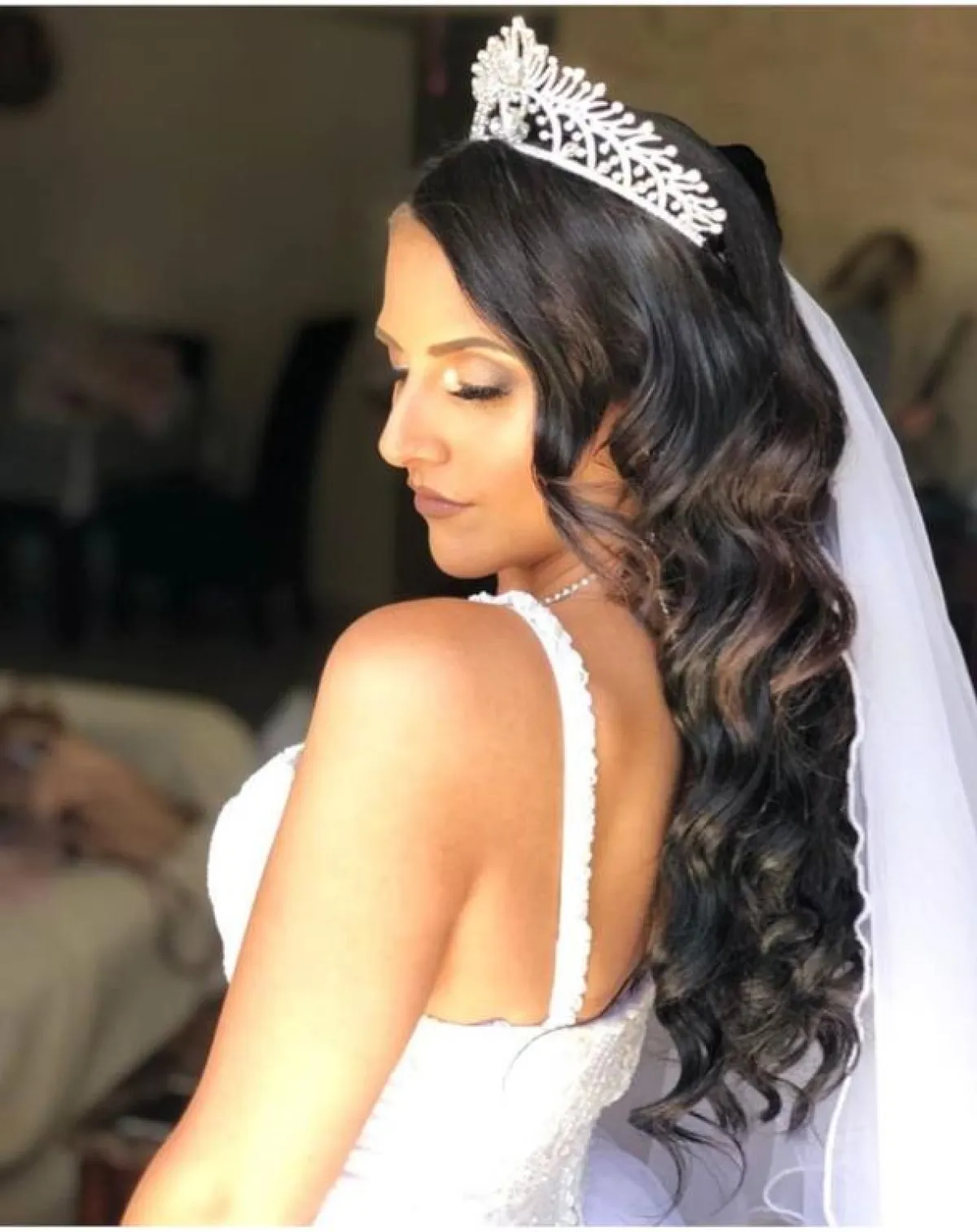 من التسريحات التي لفتتنا أيضًا، والتي تعتمدها الكثير من الصبايا هذه الفترة، هي تسريحة الشعر المفرود للوراء مع الخصلات المموجة، يمكنكِ اختيارها لإطلالة مميزة وأنيقة، مع فستان من دون أكمام طويلة، لتُبرزي جمال التسريحة، ومن الممكن أن تعتمدي معها التاج الفخم.