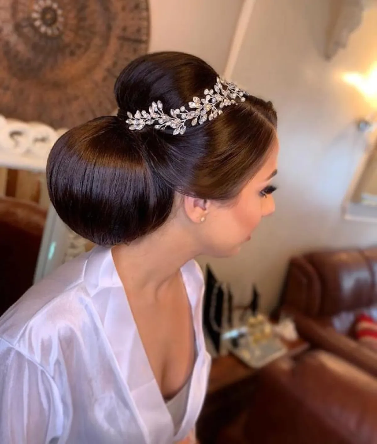 من التسريحات التي لا تبطل موضتها على الإطلاق، هي تسريحة الشينيون الأنيقة، يمكنكِ اختيارها لاطلالة مميزة بحفل زفافِك، وتناسب أكثر صاحبات الشعر الكثيف والطويل، لكنّ هذه التسريحة تحتاج إلى طرح خفيفة وبسيطة، للحفاظ على التسريحة ولتدوم معكِ طوال الحفل.