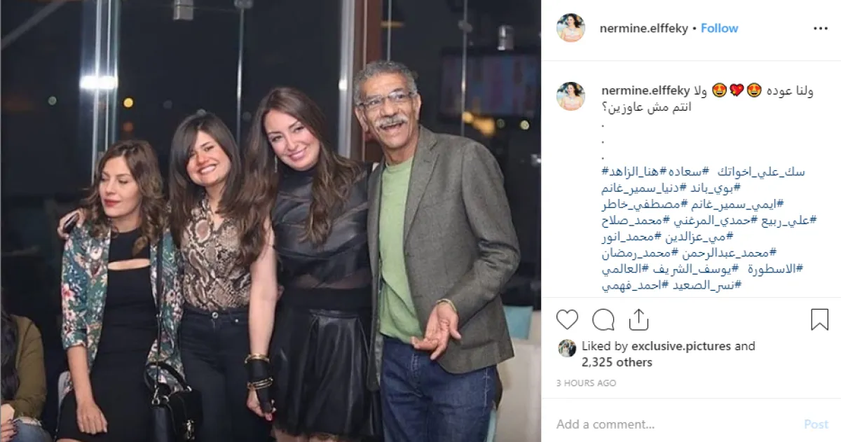 الصورة تم التقاطها بمناسبة احتفال نرمين الفقي بعيد ميلادها في الساحل الشمالي مطلع الشهر الجاري، ولكنها أعادت نشرها بالأمس لتفتح الباب أمام جمهورها لإبداء رأيهم في فكرة تقديم جزء جديد من مسلسل "أبو العروسة" الذي شهد جزئه الأول نجاحا كبيرا، بينما انقسم الجمهور حول الجزء الثاني الذي عرض مطلع العام 2019 ، وتردد وقتها أن الشركة المنتجة لن تقدم أجزاء جديدة من العمل.