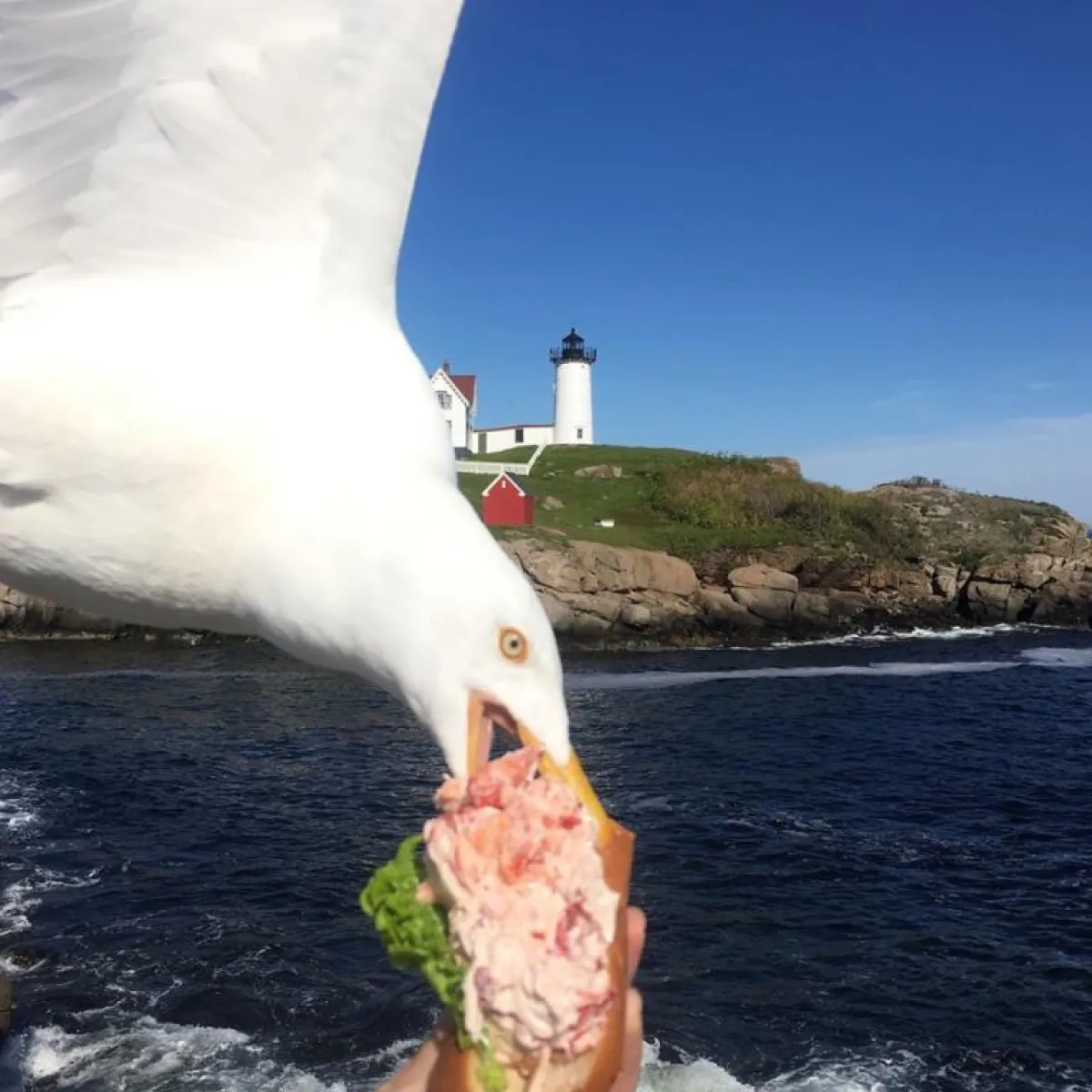 بعد أن اشترت «جيسوب» وجبتها الشهية، أمسكتها بإحدى يديها بشكل جيد، وباليد الأخرى جهزت هاتفها الذكي حتى تصور «شطيرة جراد البحر» الشهيرة، وشاءت الصدفة أنه وفي اللحظة التي أعطت أمر التصوير فيها، انقض نورس «لصّ» على شطيرتها وسرقها على الفور.