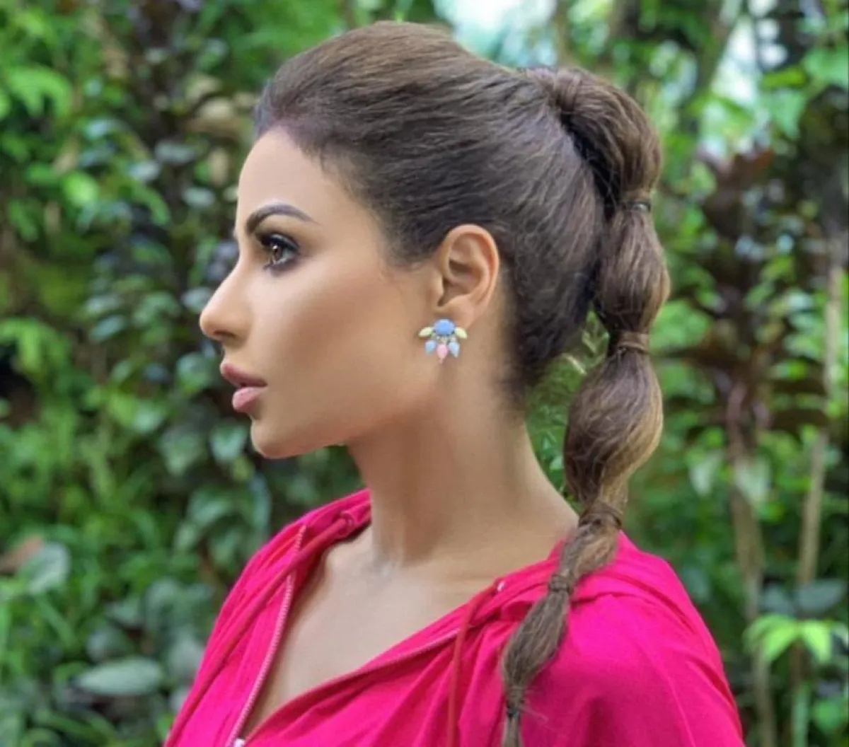وعن الأقراط الطويلة المختارة بعناية، اختارت أقراطًا بزهرة زرقاء تخرج منها خيوط عدة، وظهرت بأقراط طويلة ذهبية بلؤلؤ وخاتم ذهبي ضخم، وارتدتْ أقراطًا ذهبية، وزينت شعرها بمشبك ذهبي كبير وناعم، كما أطلت بأقراط بوردتين متسلسلتين وخاتم طويل ذهبي، كما تزينت بأقراط ضخمة ماسية على شكل أوراق شجر، وسوار كبيرة عصرية بشكل ثعبان وخاتم مميز، ولاطلالة أكثر نعومة ارتدتْ أقراطًا مميزة تحمل ألوانًا عدة، الأصفر والأزرق والزهري.