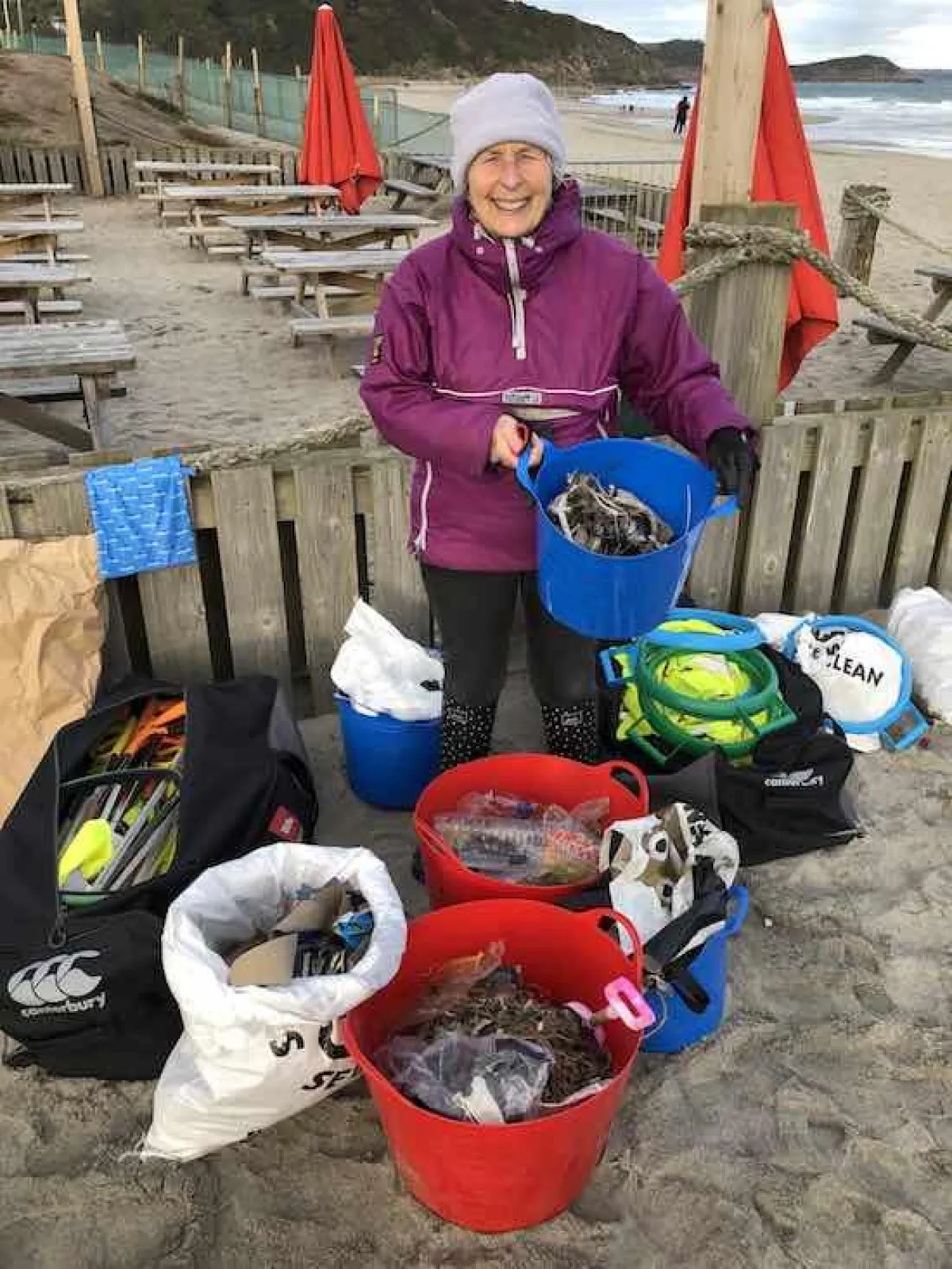 طيلة عام كامل سهرت سيدة بريطانية تبلغ من العمر 70 عاماً على تنظيف وجمع القمامة من 52 شاطئاً بريطانياً، حيث اتخذت هذا القرار المهم الذي يحظى بالكثير من التقدير، حسبما نشر موقع mindactivist خلال السنة الماضية، وتمكنت من تنظيف خليج رملي واحد كل أسبوع، استمرت على مدار عام كامل في تطهير شواطئ «ديفون» و«كورنوال» الأكثر شهرة كل أسبوع، واستعانت في عملها التطوعي بالأكياس والقفازات المطاطية كأداة لجمع القمامة، وسافرت من جهة الجنوب الغربي إلى الطرف الآخر. من تضحياتها أيضاً، قضت يوم عيد الميلاد في التقاط الزجاجات البلاستيكية وأدوات الصيد على شاطئ Trevone، بدل الاستمتاع بحفلة ممتعة وتناول ألذ الطعام والشراب.