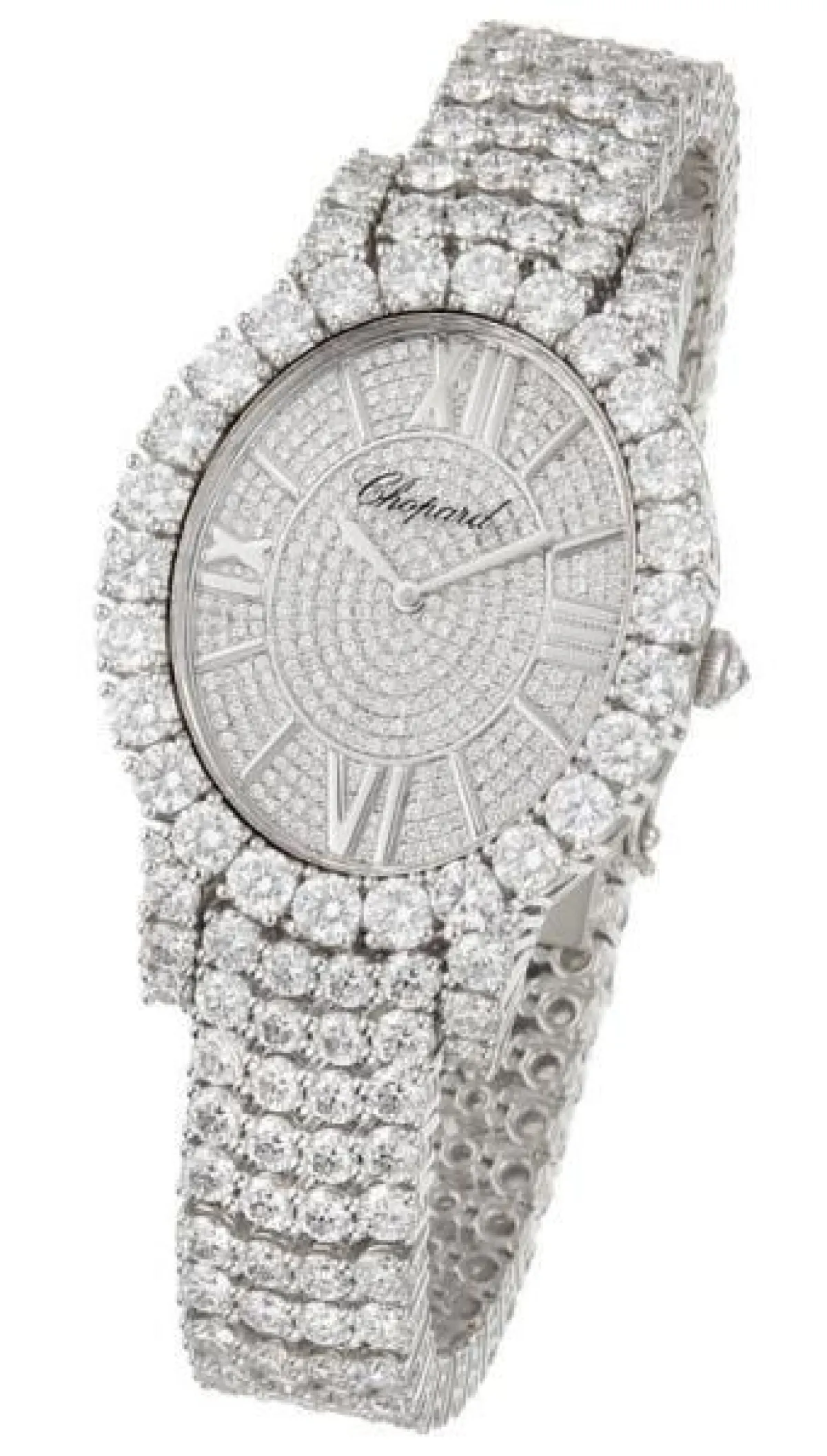 أحببنا ساعة شوبارد الماسية بالتصميم البيضاوي، لتليق بإطلالة العروس الراقية.
