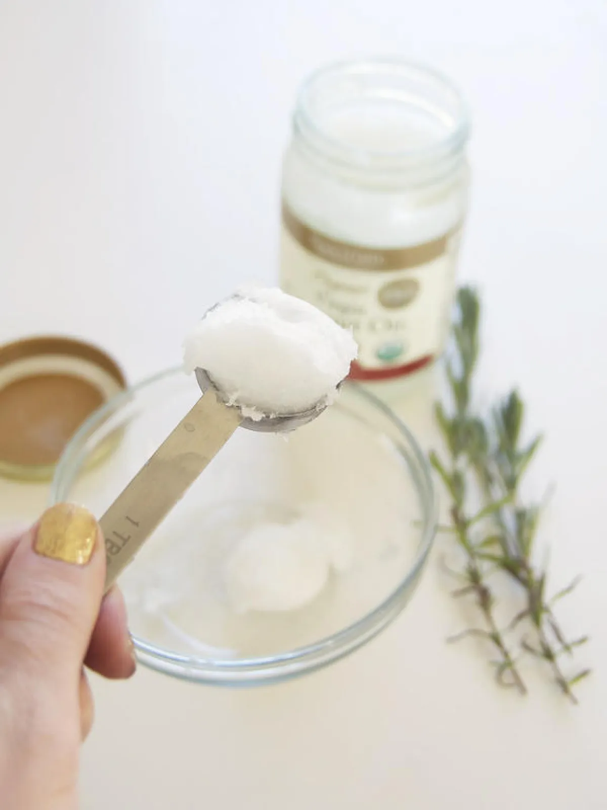 - ضعي كميّة مناسبة من زيت جوز الهند ومثلها من العسل ونصف الكميّة من خلّ التفّاح في قارورةٍ قابلة للإغلاق.