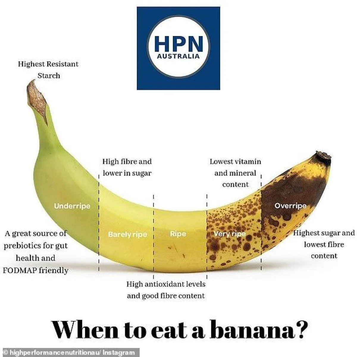 وكتب على صفحته، «High Performance Nutrition AU»: «إن أفضل طريقة لفهم كيف يمكن أن تتغير فائدة الموزة هي التحقيق فيما يحدث لها داخلياً بمرور الوقت».