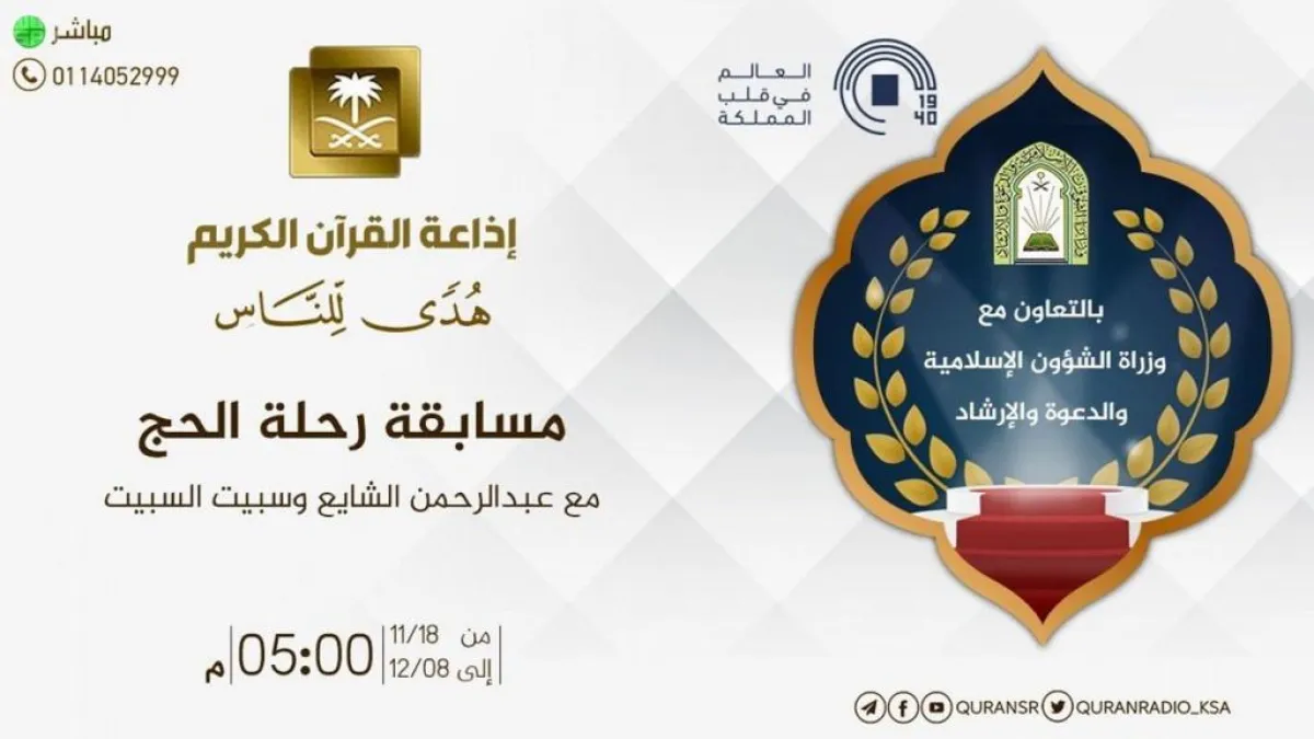 أعلنت وزارة الشؤون الإسلامية والدعوة والإرشاد إطلاق مسابقة "رحلة الحج"، بالتعاون مع إذاعة القرآن الكريم، وذلك في إطار البرامج الإعلامية التوعوية التي تنفذها وزارة الشؤون الإسلامية.