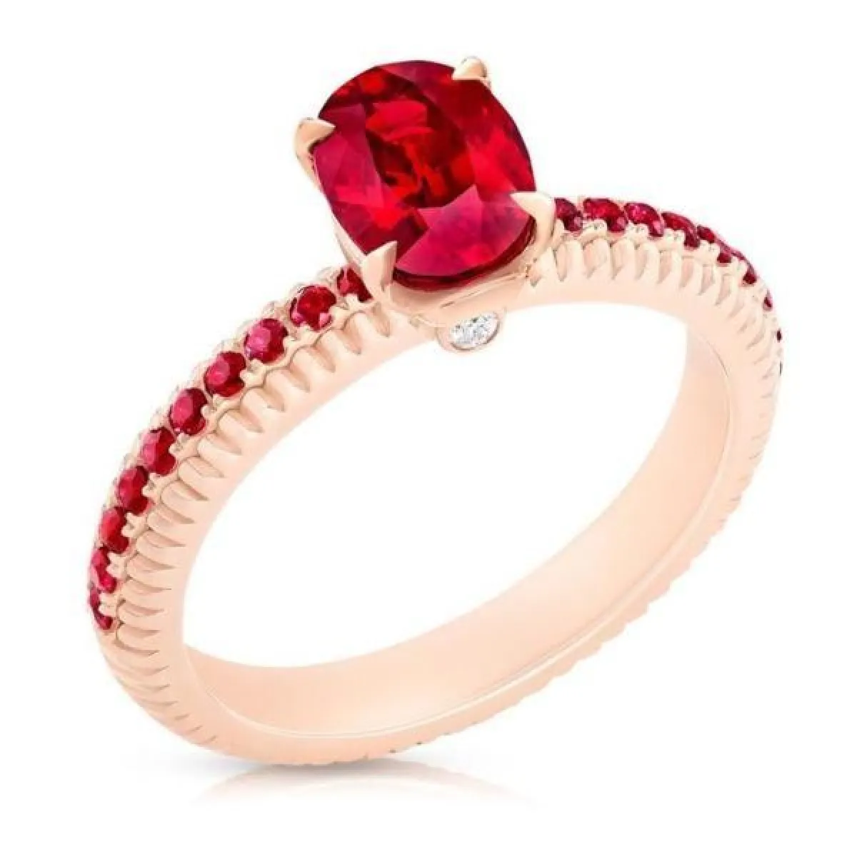 وعلى الرغم أن خاتم الخطوبة المرصع بالروبي غالباً ما يكون مصنوعاً من الذهب الأبيض، ولكن بعض الماركات مزجت بين هذا اللون الأحمر والذهب الوردي، وبدت التصاميم لافتة ومميزة، مثل خواتم Faberge، شوبارد Chopard وبعض موديلات شوميه Chaumet.