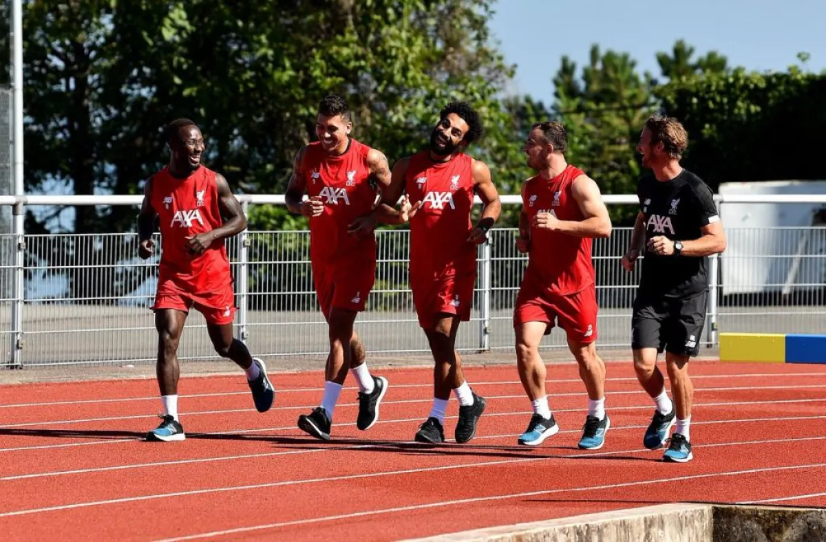 وظهر محمد صلاح وهو يقود الدراجة في إنجلترا، واليوم ظهر وهو مع زملائه في فريق ليفربول الإنجليزي، وهم يقومون بممارسة قيادة الدراجات في المعسكر التدريبي في فرنسا.