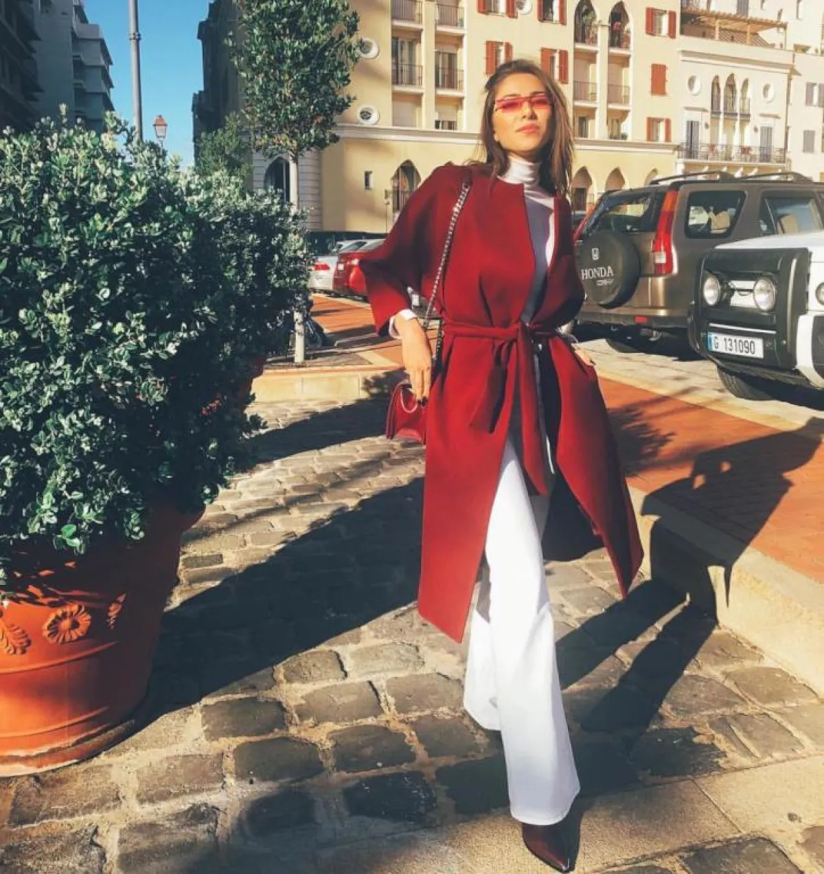 وفي اطلالة أنثوية أنيقة، اختارت بلوزة وبنطالًا باللون الأبيض، ومعطفًا طويلًا باللون الأحمر بربطة في الخصر، وتجمَّلت بنظارة وحقيبة باللون الأحمر، وظهرت بفستان أسود بتصميم رسمي، يزيِّنه حزام من الخصر، وفتحة سبعة، وأكملته بنظارة حمراء مربعة وحقيبة سوداء، وأطلَّت ببنطال أسود، وقميص بأكمام قصيرة بطبعة النمر، وتجمَّلت باطلالة عصرية مفعمة بالألوان ببنطال فوشي واسع، وحزام وبلوزة بأكمام طويلة باللون الأزرق مزيَّنة بكشكشة.