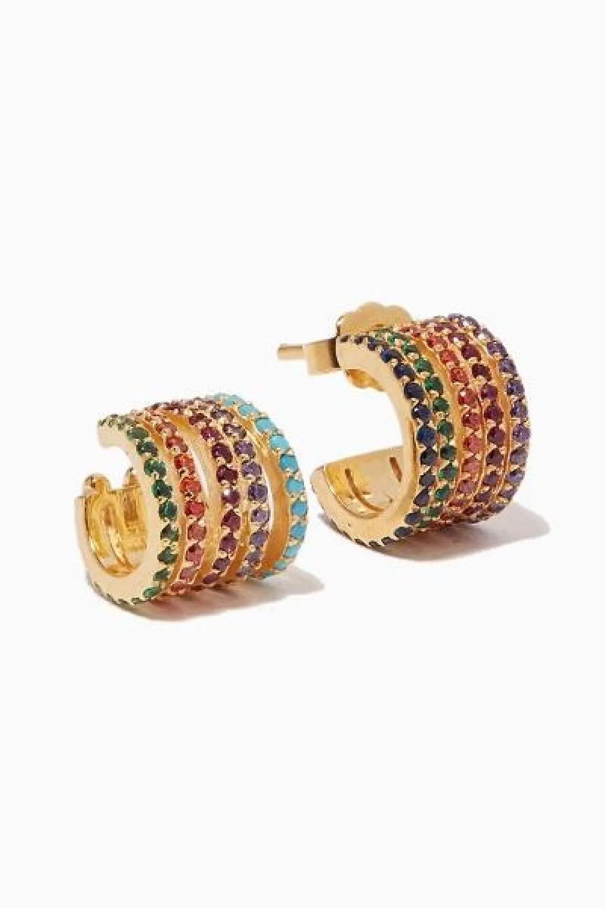 اخترنا من علامة جوانا لورا كونستانتين Joanna Laura Constantine أقراط Criss - Cross ذات التصميم الداري من الذهب الأصفر والمرصّعة بالأحجار الملونة التي ستضفي على إطلالتك هذا الصيف حيوية مثالية.