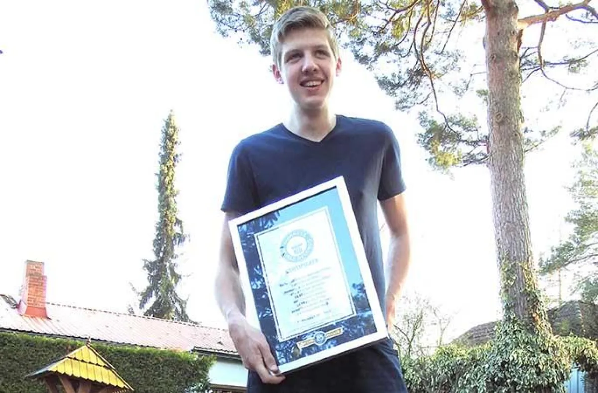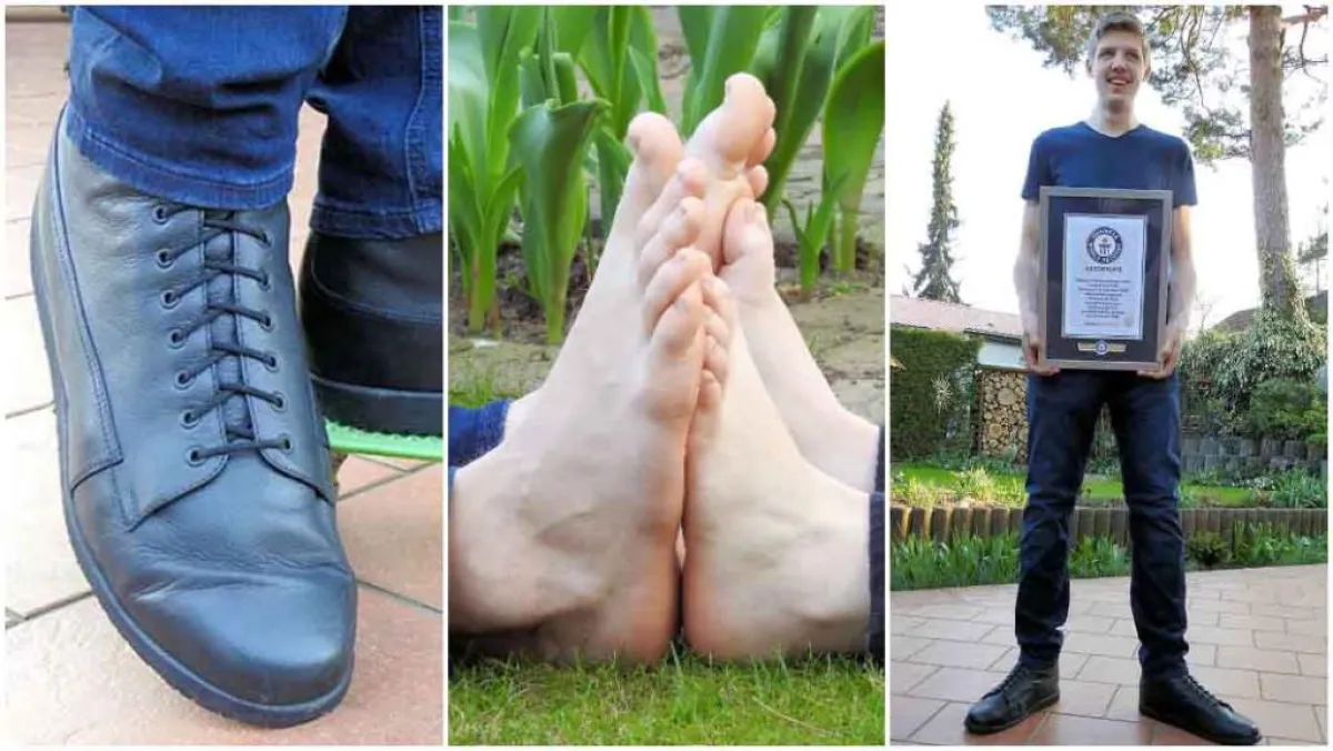 صبي ألماني يبلغ من العمر 16 عاماً لديه أكبر أقدام لمراهق بحجم ضخم يبلغ أكثر من 35 سم، مما جعلته يدخل موسوعة جينيس.