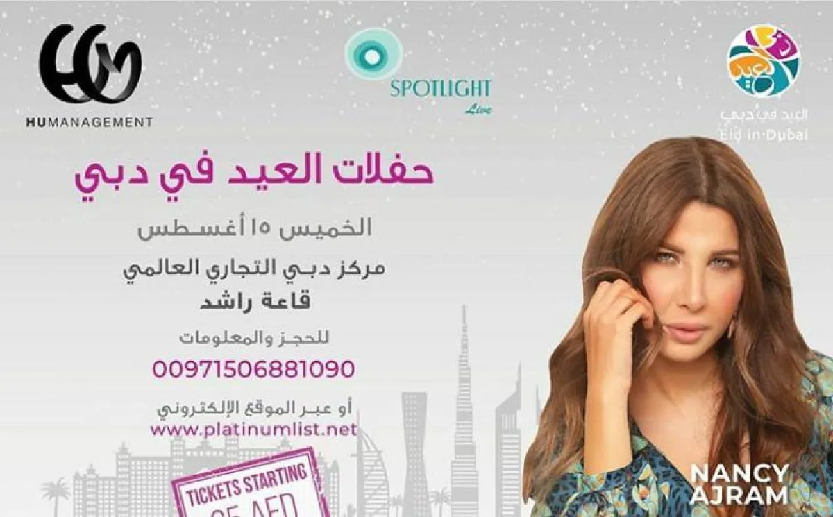 نانسي عجرم تحيي سهرة عيد الأضحى في مركز دبي التجاري في دبي في 15 آب\أغسطس.