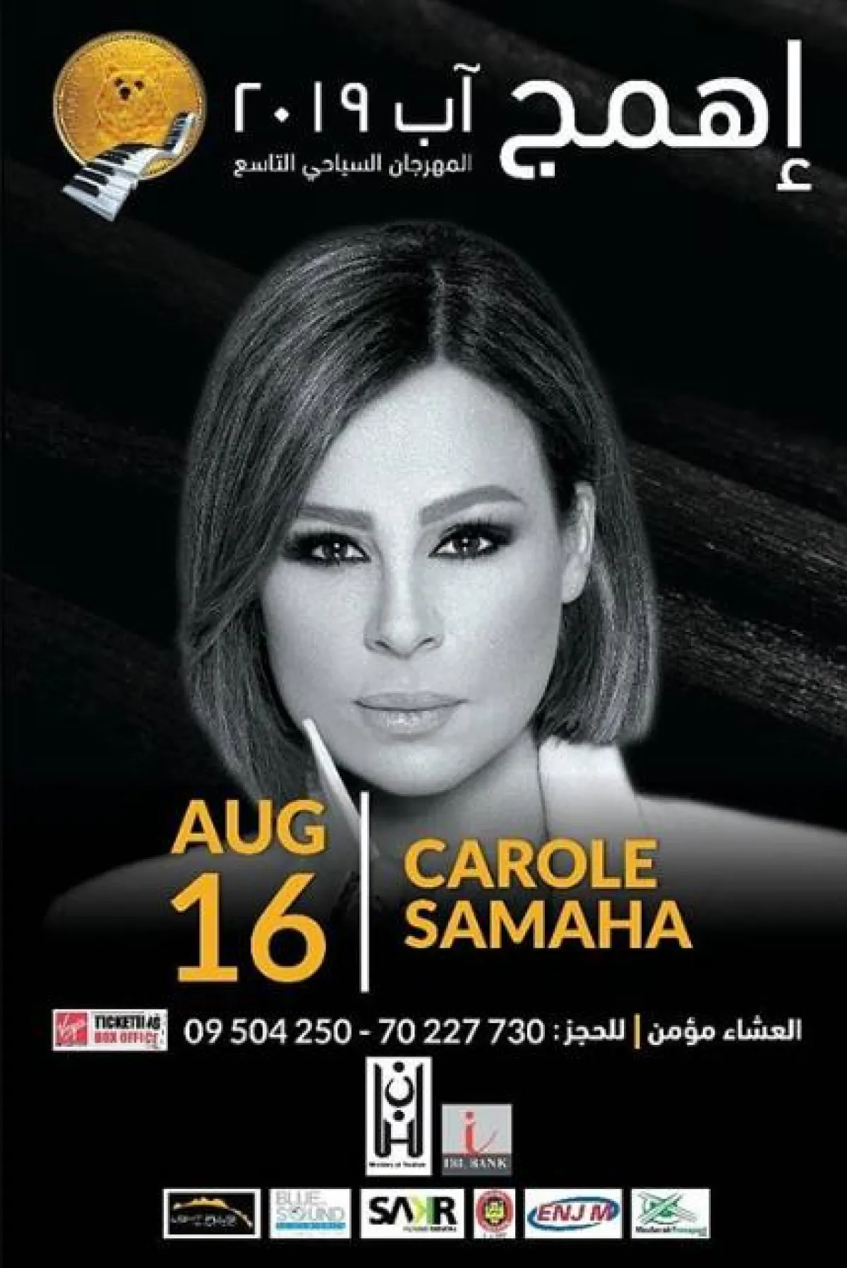 كارول سماحة تحيي حفل العيد في أهمج في 16 آب\أغسطس.