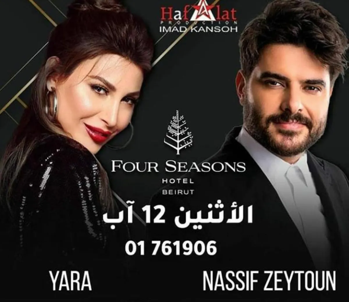 يارا ستجتمع مع ناصيف زيتون في حفل مشترك في 12 آب\أغسطس في فندق "فور سيزنز" في بيروت.