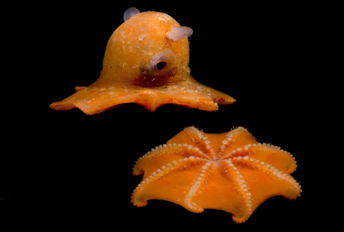 حيوان آخر غريب، إلا أن غرابته تكمن بمدى لطافة شكله وحتى سلوكه أيضاً، إنه أخطبوط «دامبو» اللطيف وجميل الشكل كالرسوم المتحركة الخاصة بالأطفال. الذي يعيش في مختلف محيطات وبحار العالم، ولكون هذا النوع الذي تم اكتشافه أول مرة خلال العام 1999، يعيش على عمق يزيد عن الـ7 آلاف متر، فهو لا يعتبر فريسة سهلة للكائنات البحرية الأخرى، ولذلك حتى وقتنا الحاضر هو من الحيوانات غير المهددة بالانقراض.