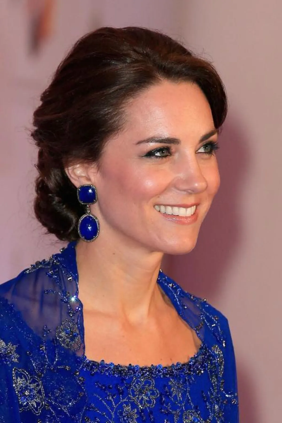 - أما في أثناء وجودها في الهند لحضور حفل غالا، تألّقت كيت ميدلتون بزوج من الأقراط الكبيرة المتدلية والمرصعة بأحجار الكوبالت الزرقاء اللافتة، منسقةً إياها مع فستان أنيق بنفس اللون.
