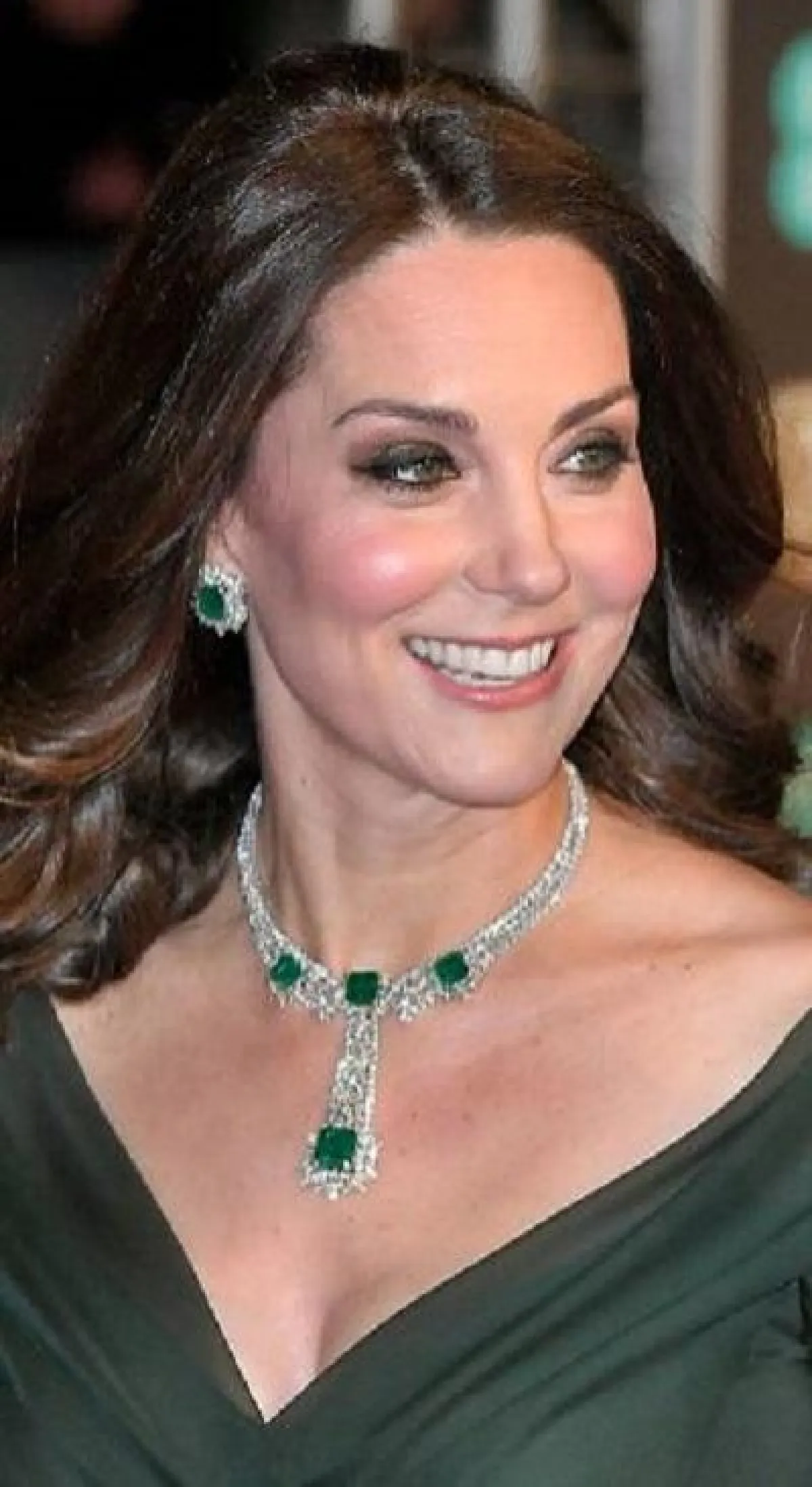- وخلال حفل جوائز بافتا، تزيّنت دوقة كامبريدج بطقم من المجوهرات الملكي المرصّع بالألماس والزمرد الأخضر الذي يليق بلون عينيها؛ محاكيةً بذلك سحر وفخامة الإطلالة.