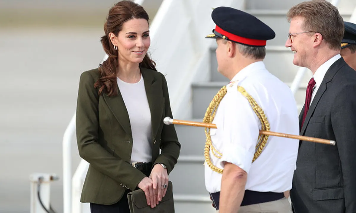 - وخلال رحلتها الأخيرة إلى قبرص، تألّقت كيت ميدلتون بزوج من الأقراط الذهبية المرصعة بالألماس الأبيض من تصميم دار Asprey، منسّقةً إياها مع إطلالة كاجوال أنيقة عبارة عن بليزر باللون الزيتي وبنطلون أسود.
